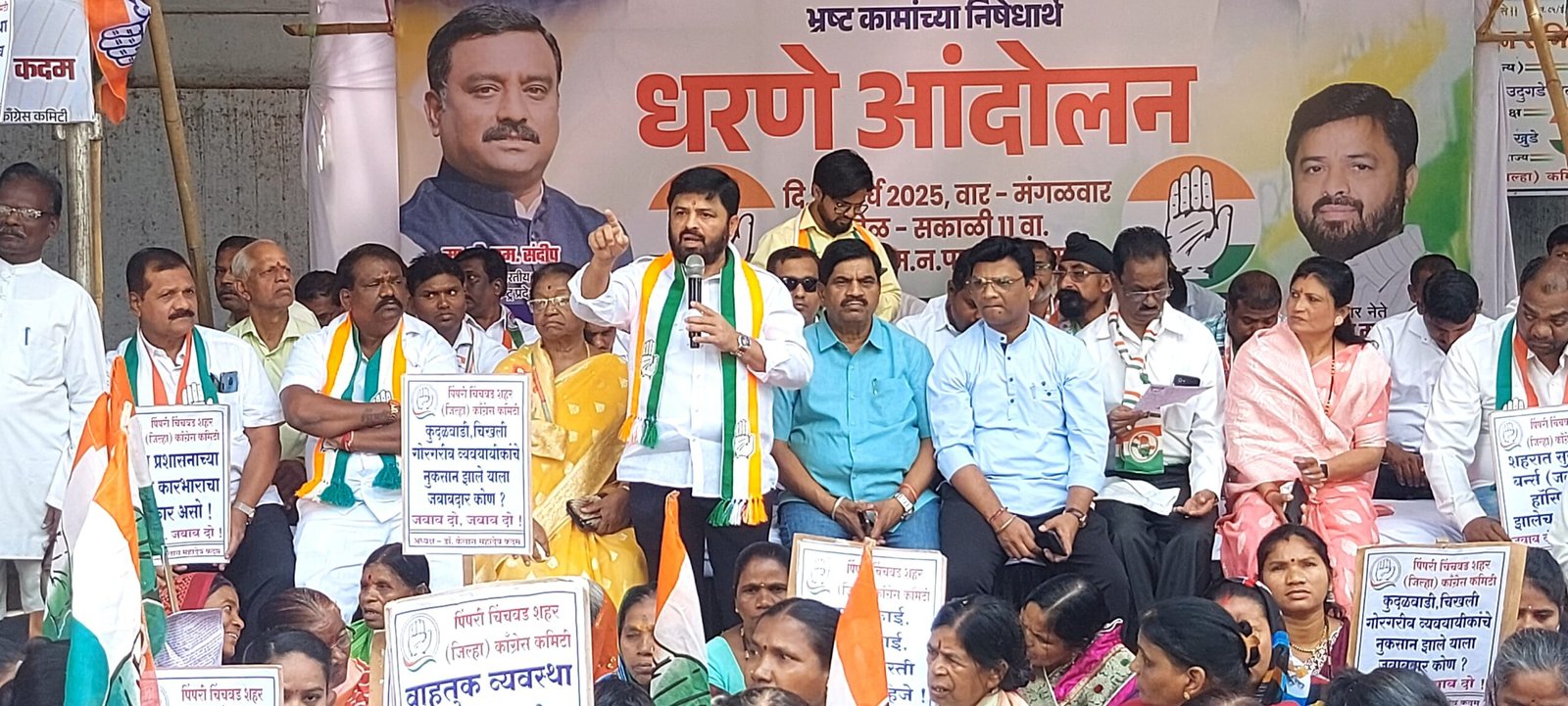 पिंपरी, (महाराष्ट्र ब्रेकिंग न्यूज) – पिंपरी चिंचवड शहर जिल्हा काँग्रेस कमिटीच्या वतीने अखिल भारतीय काँग्रेस कमिटीचे सचिव व प्रभारी बी. एम. संदीप यांच्या प्रमुख उपस्थितीत तसेच शहराध्यक्ष डॉ. कैलास कदम यांच्या नेतृत्वाखाली महापालिकेच्या भ्रष्ट व मनमानी कारभाराविरोधात महापालिकेच्या गेट समोर धरणे आंदोलन घेण्यात आले.