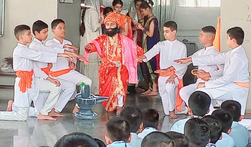 विद्यार्थ्यांनी शिवगर्जना करीत शिवरायांचे गीत व शिवरायांची प्रतिज्ञा सादर केली. आम्ही गड्या डोंगरचं राहणारं, चाकर शिवबाचं होणार,’ यावर नृत्य सादर केले. शिवगाथा ही ऐतिहासिक नाटिका, तसेच प्रतापगडावरील पराक्रम यामध्ये ‘अफजलखानाचा वध’ हे नाटक सादर केले. तसेच शिवरायांची आरती सादर केली. चित्रकला स्पर्धेचेही आयोजन करण्यात आले होते. छत्रपती शिवाजी महाराजांच्या जन्मापासून, स्वराज्य स्थापनेची शपथ, कोंढाण्याचा विजय, पावनखिंडीतील लढाई, अफजल खानाचा वध, राज्याभिषेक असे विविध क्षण उभे करत पोवाडा, गोंधळ, लाठीकाठी व तलवारबाजी करीत वातावरण शिवमय होवून गेले. ‘जय भवानी, जय शिवाजी’ या घोषणांनी वातावरण दुमदुमून गेले होते.