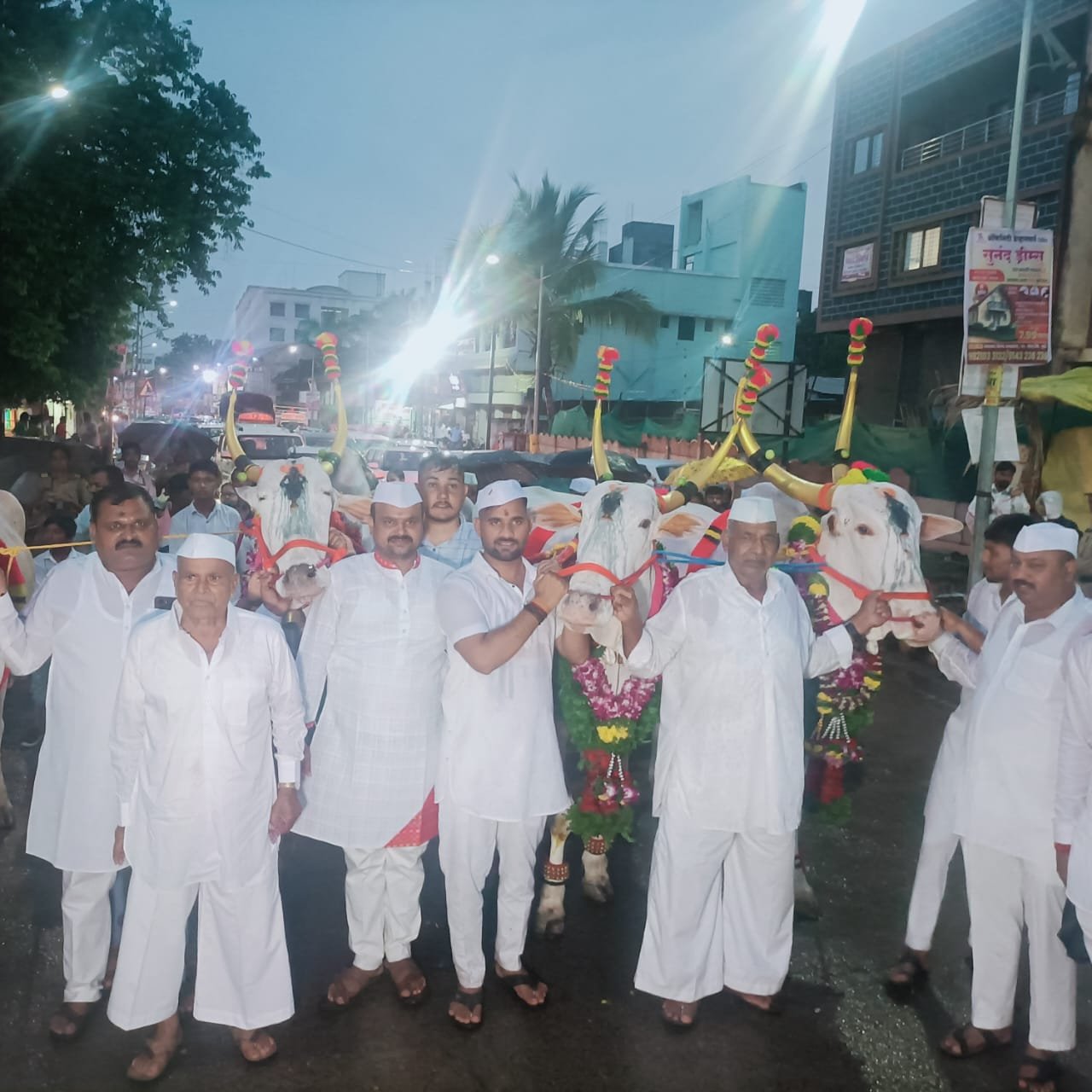 मंदिराकडे जाणाऱ्या महाद्वार रस्त्यावर श्री ज्ञानेश्वर महाराज संस्थान कमेटीचे वतीने दोन्ही बैलजोडीची पूजा करण्यात आली. यावेळी संस्थानचे प्रमुख विश्वस्त ॲड. राजेंद्र उमाप, विश्वस्त व पालखी सोहळा प्रमुख निरंजननाथजी योगी, विश्वस्त भावार्थ देखणे, व्यवस्थापक ज्ञानेश्वर वीर, श्रीधर सरनाईक, बैल समितीचे प्रमुख बबनराव कुऱ्हाडे, माजी नगराध्यक्ष राहुल चिताळकर पाटील, माजी नगरसेवक डी.डी.भोसले पा., वस्ताद सहादु कुऱ्हाडे, योगेश कुऱ्हाडे, श्रींचे मानकरी योगिराज कुऱ्हाडे, योगेश आरु, ज्ञानेश्वर उर्फ माऊली दिघे, पुष्प सजावटीचे सेवेकरी सुदीप गरूड, माऊली गुळुंजकर, भैरवनाथ ग्रामदेवता उत्सव मंडळाचे अध्यक्ष शंकरराव कुऱ्हाडे, पै. शिवाजीराव रानवडे, माऊली उर्फ डी.डी.घुंडरे पा., अजित मधवें आदीसह आळंदीतील नागरिक, विविध आजी माजी पदाधिकारी उपस्थित होते.