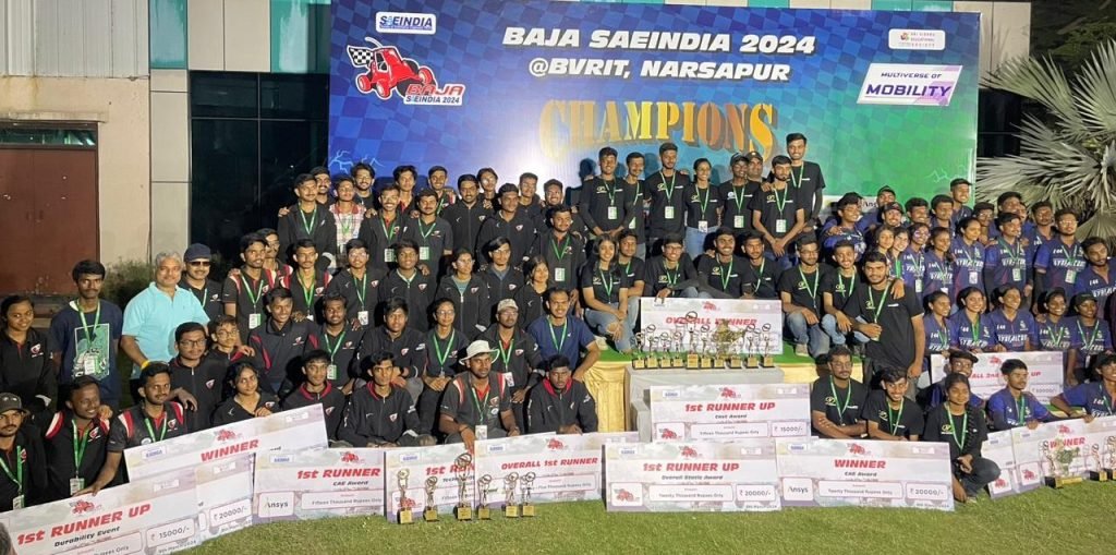 डॉ. बी. व्ही. राजू इन्स्टिट्यूट ऑफ टेक्नॉलॉजी नसरापूर, तेलंगणा, येथे सहा ते नऊ मार्च २४ दरम्यान राष्ट्रीय स्पर्धा आयोजित करण्यात आली होती. रेड बॅरॉन संघाने ग्रीन एफिशियंट व्हेईकल, डिझाईन आणि इनोव्हेशन श्रेणींमध्ये अव्वल स्थान पटकावले आणि ऑटोमोटिव्ह डिझाईन आणि अभियांत्रिकी क्षेत्रात टिकून राहण्याची आणि सीमा वाढवण्याची क्षमता आणि ग्राउंड ब्रेकिंग सोल्यूशन्स विकसित करण्याची त्यांची वचनबद्धता दर्शविली.