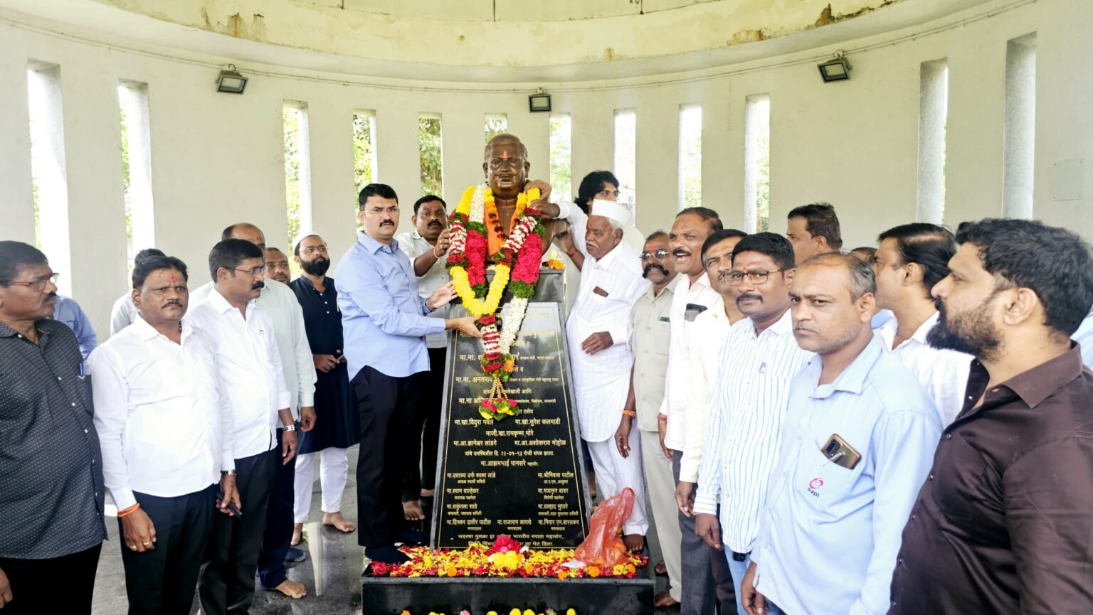 कष्टकरी गोरग़रीब जनतेला स्वाभिमानाने जगता यावे यासाठी आपले आयुष्य वेचणार्या अण्णासाहेब पाटील यांच्या जयंती निमित्त चिंचवड येथील अण्णासाहेब पाटील यांच्या पुतळ्याला महाराष्ट्र मजदूर संघटनेच्या वतीने पुष्पहार अर्पण करून त्यांना अभिवादन करण्यात आले. यावेळी कामगार नेते तथा शिवसेना उपनेते इरफानभाई सय्यद, संघटनेचे कार्याध्यक्ष परेश मोरे जन.सरचिटणीस प्रवीण जाधव, उपाध्यक्ष भिवाजी वाटेकर, सचिव सर्जेराव कचरे मातोश्री माथाडी कामगार सहकारी पतसंस्थेचे अध्यक्ष पांडुरंग कदम रायरेश्वर माथाडी कामगार सहकारी पतसंस्थेचे अध्यक्ष सतीश कंठाळे, ¸ संघटनेचे खजिनदार नागेश व्हनवटे ¸ गोरक्षनाथ दुबाले,¸ बबन काळे,¸ पांडुरंग काळोखे ¸ ,संपत मांढरे, ¸ श्रीकांत मोरे, ¸ अशोक साळुंखे¸,बबन काळे, समर्थ नाईकवाडे,अमित पासलकर ¸ अविनाश जांभळे ¸ नाना नाईकवाडे¸ ज्ञानेश्वर घनवट,¸ गिरीश देशमुख ¸,चंद्रकांत पिंगट, ¸ सोमनाथ फुगे, ¸ सोपान गाडगे ¸, सतीश शिंदे, ¸ धुळा शेंडगे ¸, रोशन दोलताडे, ¸ सुनिल माने ¸, ज्ञानदेव पाचपुते ¸ कैलास तोडकर ¸, जयराम केगार ¸, आयुष शिंदे ¸ रत्नाकर भोजने व असंख्य कामगार मोठ्या संख्यने उपस्थित होते.