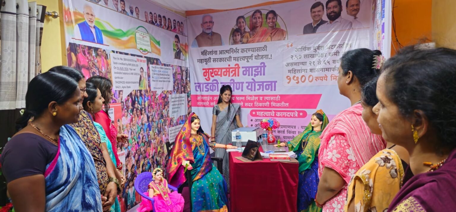 पिंपरी, (महाराष्ट्र ब्रेकिंग न्यूज )– कोविड योद्धा महिला बचत गटाने घरगुती गणेशोत्सवात मुख्यमंत्री लाडकी बहिण योजनेचा लाभ घेणाऱ्या बहिणींचा आकर्षक देखावा साकारला असून हा देखावा पाहण्यासाठी परिसरातील महिलांनी एकच गर्दी केल्याचे चित्र पाहायला मिळत आहे.