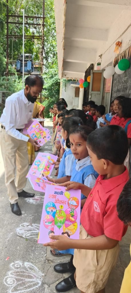 विद्यार्थांचे औक्षण करून त्यांना शालेय पाठ्यपुस्तकांचे वाटप करण्यात आले.पेन, पेन्सिल अशा भेट वस्तू देण्यात आल्या.विद्यार्थी व पालक मोठ्या उत्साहाने, आनंदाने हजर होते. चंदा नामदे, संगिता शहासने, मंदा कोकरे, ज्योत्स्ना वाव्हळ, राजश्री गायकवाड, सुनिता धोंडगे सर्व शिक्षक कार्यक्रमात सहभागी झाले होते.