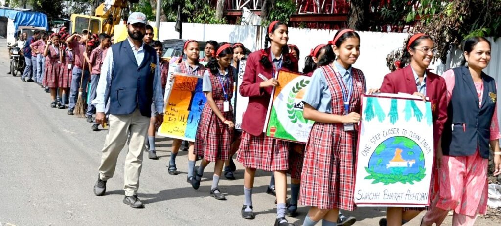 चिंचवड, (महाराष्ट्र ब्रेकिंग न्यूज ) – महात्मा गांधी यांच्या जयंतीनिमित्त चिंचवड येथील सेंट अँड्—युज हायस्कूलमधील 120 विद्यार्थ्यांनी शिक्षकांसमवेत हातात स्वच्छता आली. अंगणात समाज का अंधारात? स्वच्छ भारत आदर्श भारत, स्वच्छता पाळा रोगराई टाळा, माझा भारत स्वच्छ भारत, आदी श्लोगणचे हातात फलक घेऊन घोषणा देत चिंचवड एमआयडीसी परिसरात आज सकाळी रॅली काढून नागरीकात स्वच्छतेविषयी जनजागृती केली. तसेच शाळा व शाळाबाहेरील परिसरात रस्त्याच्या दुर्तफा बाजूचे प्लास्टिकच्या बाटल्या, कचरा, आधीची स्वच्छता झाडलोट करून महात्मा गांधी जयंती साजरी केली.
