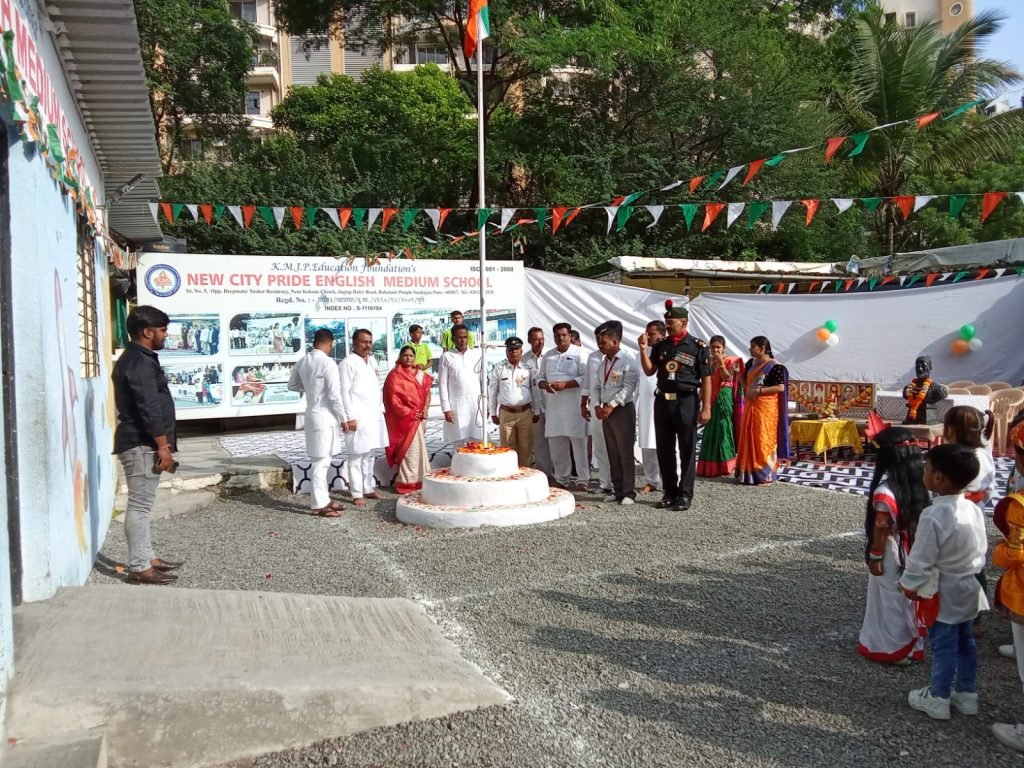पिंपरी, (महाराष्ट्र ब्रेकिंग न्यूज) – रहाटणी क्रांतिसूर्य महात्मा जोतिबा फुले एज्युकेशन फाउंडेशन संचालित, न्यू सिटी प्राईड इंग्लिश मीडिअम स्कूल येथे 15 ऑगस्ट उत्साहात साजरा करण्यात आला. सुभेदार बळीराम खांडेभराड यांच्या हस्ते ध्वजवंदन करण्यात आले. या निमित्ताने विविध संस्कृतिक कार्यक्रमांचे आयोजन करण्यात आले होते.