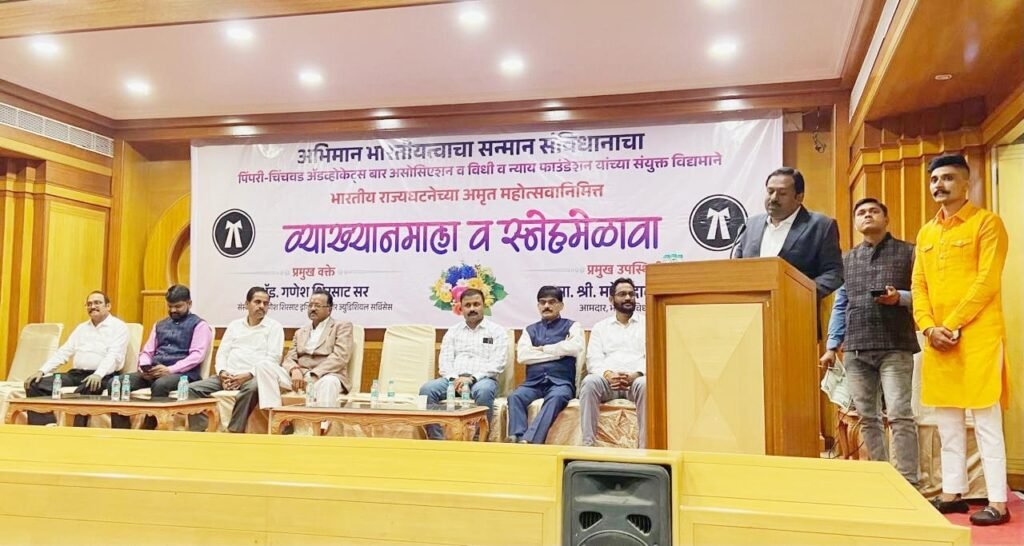 भारतीय राज्यघटनेच्या अमृत महोत्सवानिमित्त विधी व न्याय फाऊंडेशन व पिंपरी-चिंचवड ॲडव्होकेट्स बार असोसिएशन यांच्या संयुक्त विद्यमाने भोसरीमध्ये वकीलांसाठी व्याख्यानमाला व स्नेह मेळावा आयोजित केला होता. यास ४०० वकिलांनी सहभाग नोंदविला होता.