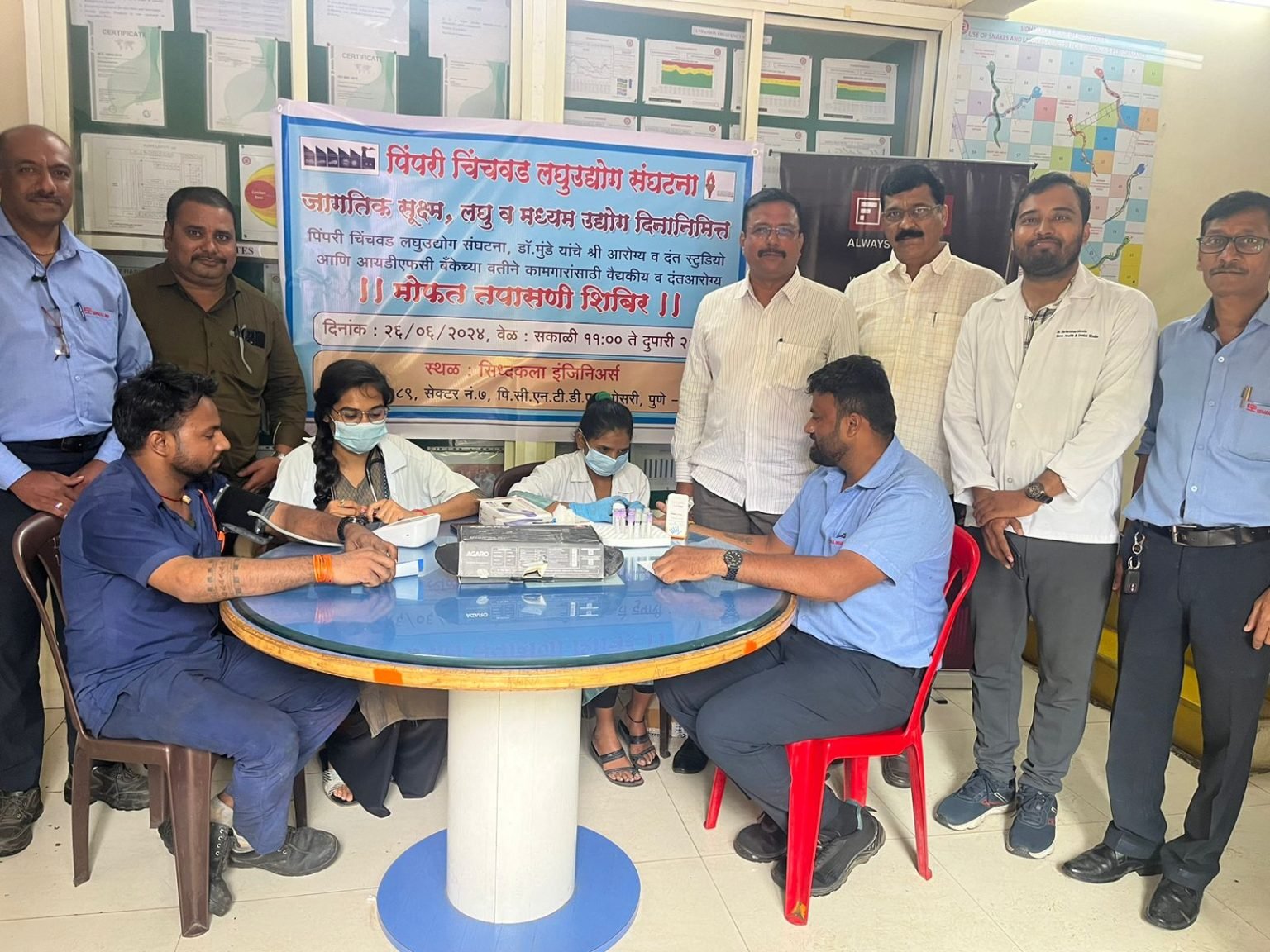पिंपरी, (महाराष्ट्र ब्रेकिंग न्यूज) – पिंपरी चिंचवड लघुउद्योग संघटना, डॉ. श्रीक्रिष्णा मुंडे यांचे श्री आरोग्य व दंत स्टुडीओ निगडी प्राधिकरण आणि आयडीएफसी फस्ट बँक यांचे संयुक्त विद्यमाने भोसरी औद्योगिक परिसरातील कामगारांसाठी जागतिक सूक्ष्म, लघु व मध्यम उद्योग दिनाचे औचित्य साधून मोफत आरोग्य व दंत तपासणी शिबिराचे आयोजन करण्यात आले होते.