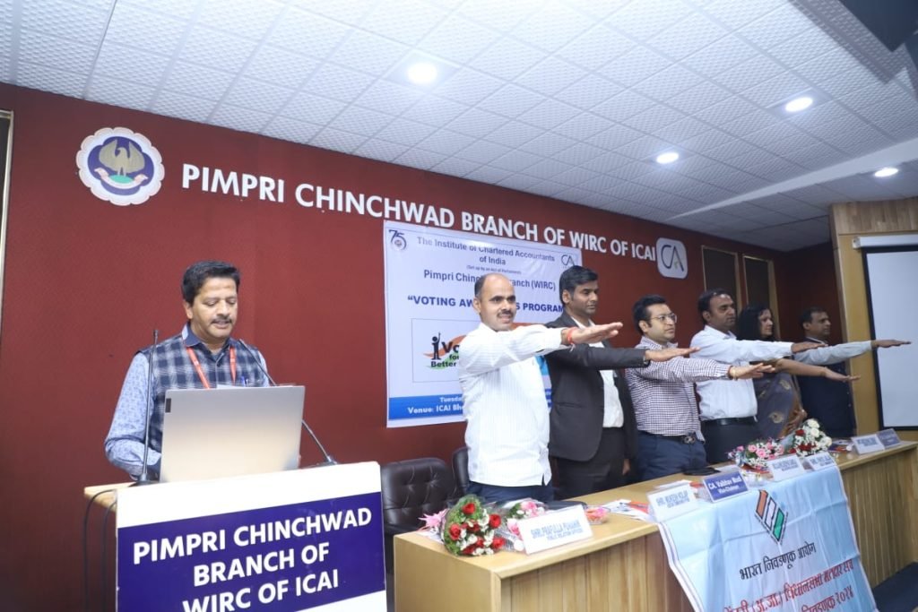 यावेळी पिंपरी चिंचवड शहरातील प्रशिक्षणार्थी सनदी लेखापालांनी निवडणूकीत मतदान करण्याची शपथ घेतली.
