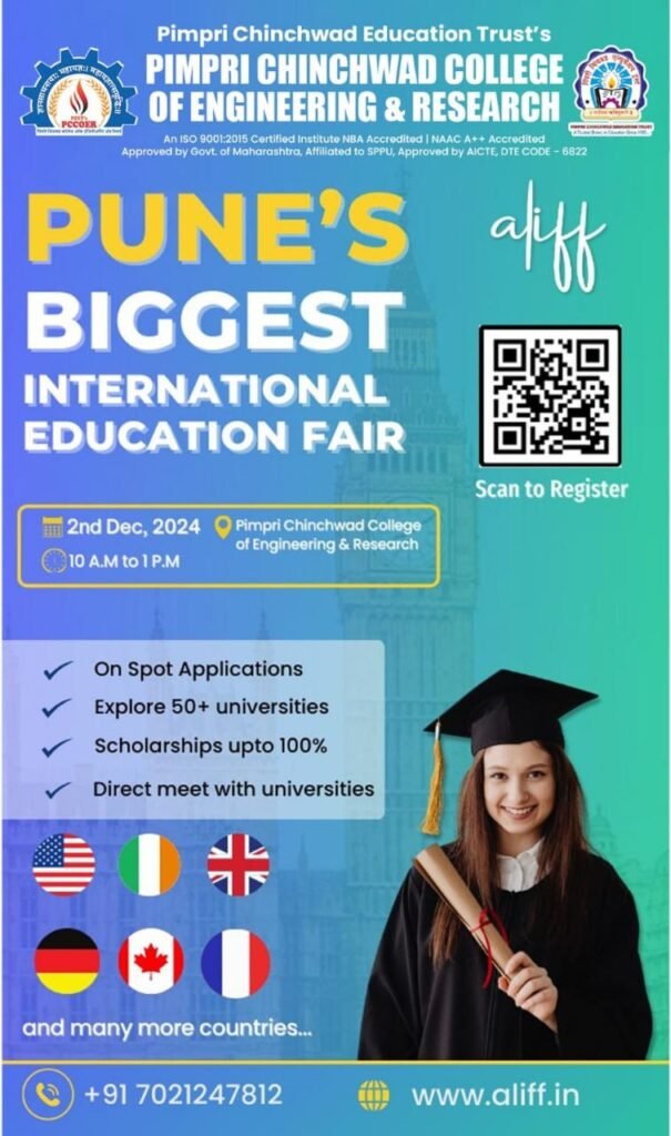 पिंपरी, (महाराष्ट्र ब्रेकिंग न्यूज ) – पिंपरी चिंचवड एज्युकेशन ट्रस्टच्या रावेत येथील पिंपरी चिंचवड कॉलेज ऑफ इंजीनियरिंग अँड रिसर्च येथे सोमवारी (दि. २ डिसेंबर) परदेशात उच्च शिक्षण घेऊ इच्छिणाऱ्या विद्यार्थ्यांसाठी “आंतरराष्ट्रीय