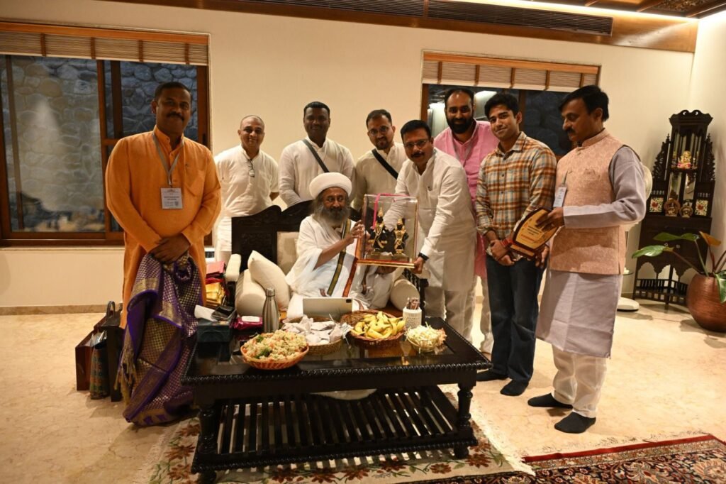 पिंपरी, (महाराष्ट्र ब्रेकिंग न्यूज ) – बंगलोर आश्रम येथे श्री श्री रविशांकरजी गुरुदेव महाराज यांचे आशीर्वाद घेतले. या प्रसंगी गुरुदेवांना श्री विठ्ठल रुक्मिणी प्रतिमा व संतश्रेष्ठ तुकाराम महाराज पगडी, उपर्ण भेट देण्यात आले. या प्रसंगी पिंपरी चिंचवड लघुउद्योग संघटनेच्या २०२५ दिनदर्शिकेचे प्रकाशन श्री श्री रविशंकरजी यांच्या शुभहस्ते करण्यात आले.