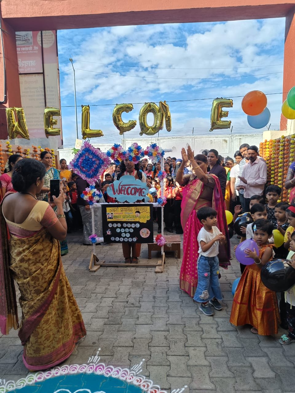 ढोलताशाच्या गजरात मुलांचे स्वागत होत असताना जुने विद्यार्थ्यांना मित्र मैत्रिणी भेटल्याचा आनंद तर नविन प्रवेश घेतलेले विद्यार्थी गोंधळलेले घाबरलेले आणि छोटे मंडळींनी तर रडुन गोंधळ घातला.अस संमिश्र वातावरण संस्थेच्या आवारात दिसुन येत होत.