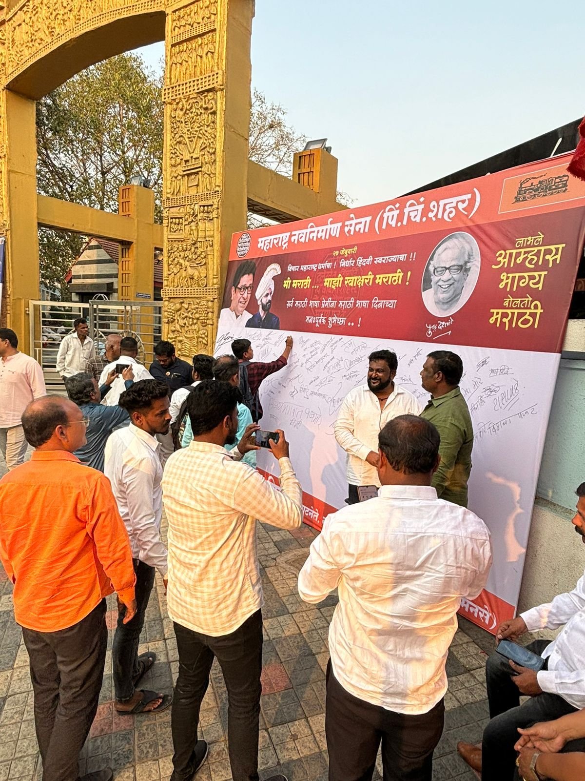 पिंपरी,(महाराष्ट्र ब्रेकिंग न्यूज) – मराठी राजभाषा दिनाचे औचित्य साधून महाराष्ट्र नवनिर्माण सेनेच्या वतीने पिंपरी येथील डॉ. बाबासाहेब आंबेडकर चौक येथे मंगळवारी (दि.२७) मराठी स्वाक्षरी मोहीम घेण्यात आली. त्यामध्ये पदाधिकारी, मान्यवर आणि सर्वसामान्य नागरिकांनी सहभाग घेत स्वाक्षरी केली.