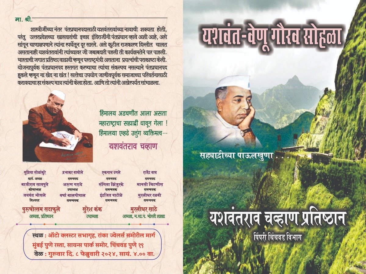 पिंपरी (महाराष्ट्र ब्रेकिंग न्यूज) – यशवंतराव चव्हाण प्रतिष्ठान, पिंपरी – चिंचवड विभागाच्या वतीने गुरुवार, दिनांक ०८ फेब्रुवारीला दुपारी ०४:०० वाजता ऑटो क्लस्टर सभागृह, सायन्स पार्कसमोर, जुना मुंबई – पुणे हमरस्ता, चिंचवड येथे यशवंत – वेणू गौरव सोहळ्याचे आयोजन करण्यात आले आहे.