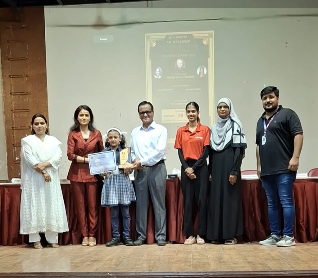 पिंपरी (महाराष्ट्र ब्रेकिंग न्यूज ) – राज्यस्तरीय पै स्पेस मॅनिया या स्पर्धेत बीना इंग्लिश मीडियम स्कूल, पांढारकरनगर, आकुर्डी या शाळेतील हेबा अकमल खान या विद्यार्थिनीने प्रथम क्रमांक पटकावला. पुणे कॅम्प येथील आझम कॅम्पस या संस्थेत सोमवार, दिनांक ३० सप्टेंबर २०२४ रोजी आयोजित करण्यात आलेल्या या स्पर्धेत महाराष्ट्रातील ४२ शाळांमधून सुमारे १५०० विद्यार्थ्यांनी सहभाग घेतला होता. तसेच १०६६ प्रकल्प पाठविले होते. आझम कॅम्पस या संस्थेचे डायरेक्टर डॉ. पी. ए. इनामदार यांच्या प्रमुख उपस्थितीत आणि विजनरी लीडर डायरेक्टर ऑफ रोबोटिक्स इंडियाच्या पायल राजपाल यांच्या हस्ते सन्मानचिन्ह आणि प्रमाणपत्र प्रदान करून हेबा अकमल खानला सन्मानित करण्यात आले. हेबा खानसह बीना इंग्लिश मीडियम स्कूलमधील शाजेब शेख, हसनैन सय्यद, वैभव कांबळे या विद्यार्थ्यांनीही या स्पर्धेत सहभाग घेतला होता.