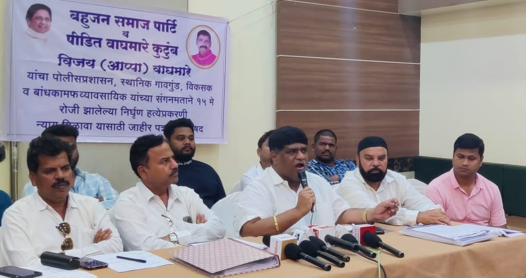 पिंपरी, (महाराष्ट्र ब्रेकिंग न्यूज) – बहुजन समाज पार्टीचे कार्यकर्ते विजय वाघमारे यांचा १५ मे रोजी संशयास्पद मृत्यू झाला असून या घटनेस जबाबदार असणाऱ्या स्थानिक गावगुंड, राजकीय नेते यांच्यावर गुन्हे दाखल करून सीआयडी अथवा सीबीआय मार्फत चौकशी करावी अशी मागणी बहुजन समाज पार्टीचे महाराष्ट्र प्रदेश प्रभारी हुलगेश चलवादी यांनी गुरुवारी पत्रकार परिषदेत केली.