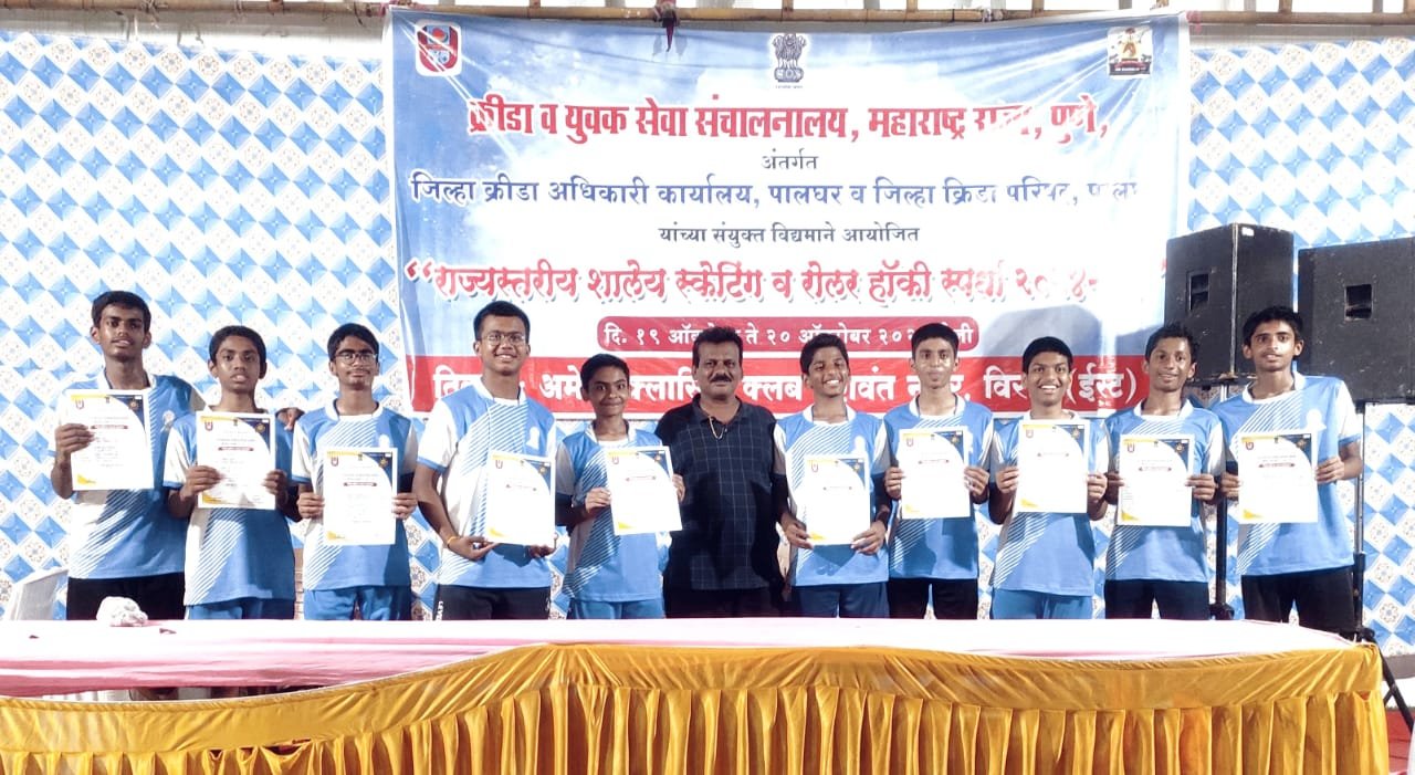 पिंपरी, (महाराष्ट्र ब्रेकिंग न्यूज ) – क्रिडा व युवक सेवा संचालनालय, (महाराष्ट्र राज्य) पुणे जिल्हा क्रिडा परिषद व जिल्हा क्रिडा अधिकारी कार्यालय, पालघर द्वारा आयोजित राज्य स्तरीय रोलर हॉकी क्रिडा स्पर्धा (२०ऑक्टो ते २१ऑक्टो २०२४) विरार मध्ये पार पडल्या. वयोगट १९ वर्षाखालील मुले मध्ये टाटा मोटर्स विद्यानिकेतन इंग्लिश मिडीयम स्कूल ने द्वितीय क्रमांक पटकावला.