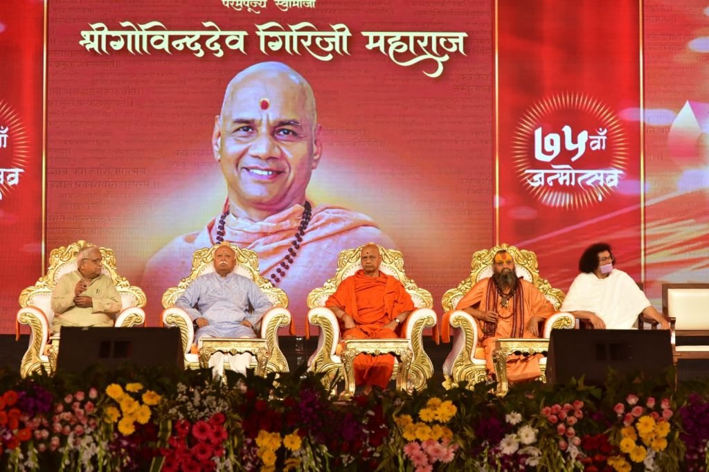 मंदिरं निर्माण करता येतील, दुधा-दह्याचे अभिषेकही घालता येतील, पण दीनदुबळ्यांना उभं करणारं मंदिर मात्र कोणालाही उभं करता येतं नाही. स्वामी गोविंददेव गिरिजी महाराजांनी मात्र हे कार्यही पूर्ण केल्याचे कृतार्थ भावही त्यांनी व्यक्त केले. स्वामीजींच्या कार्याचा सुवर्ण कलश म्हणजे अयोध्येतील श्रीराम मंदिर असल्याचे सांगत त्यांनी मंदिरासाठी झालेल्या पाचशे वर्षांच्या संघार्षावर प्रकाश टाकला. सहाव्या शतकांपासून आकमणं झेलीत सोळाव्या शतकात संपूर्ण उध्वस्त झालेल्या राजा विक्रमादित्य निर्मित श्रीराम मंदिराच्या जागी आज पुन्हा भव्य आणि दिव्य मंदिर उभे राहीले. प्राणप्रतिष्ठेच्या दिव्य सोहळ्यातून अवघ्या जगाने प्र्रभु श्रीरामचंद्रांचे दर्शन घेतले. सुरुवातीपासूनच श्रीराम मंदिर आंदोलनाशी जोडलेल्या स्वामींच्या देखरेखीखाली उभे राहीलेले हे मंदिर देशाच्या संस्कृतीचे मंदिर असल्याचे गौरोद्गारही त्यांनी काढले.