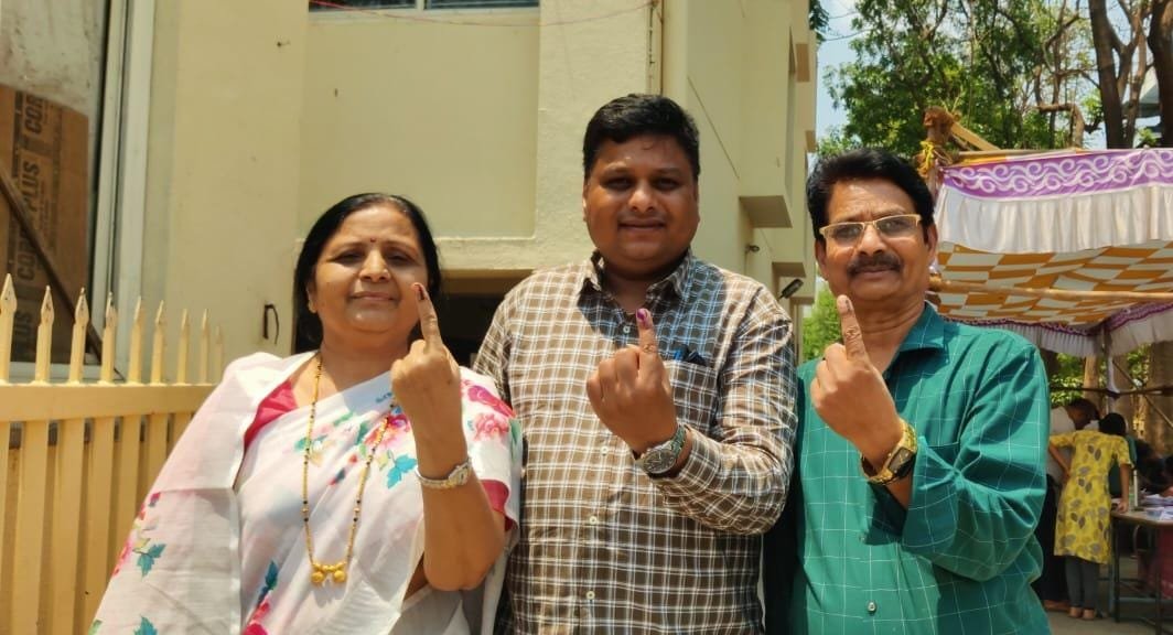 पिंपरी, (महाराष्ट्र ब्रेकिंग न्यूज) – पिंपरी चिंचवड मधील ज्येष्ठ सामाजिक कार्यकर्ते नंदाताई तुळसे आणि लक्ष्मण तुळसे यांचे चिरंजीव डॉ. किरण यांनी सोमवारी दुपारी आपल्या आई वडिलांसह थेरगाव येथील एम. एम. हायस्कूल मध्ये मतदान करून आपले राष्ट्रीय कर्तव्य बजावले.