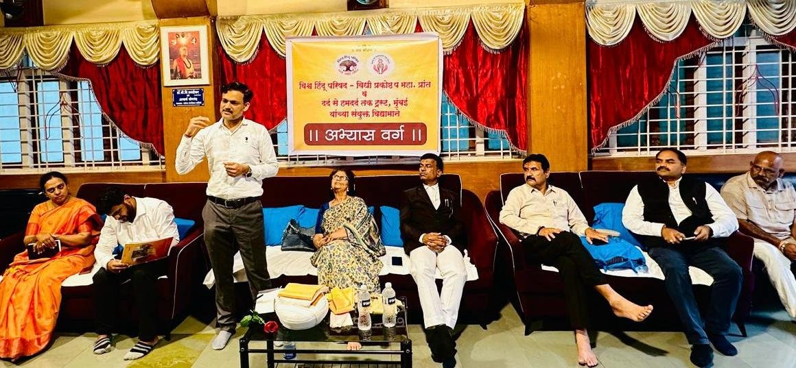 विश्व हिंदू परिषदेच्या स्थापना षष्ट्यब्दीपूर्ती वर्षानिमित्त विश्व हिंदू परिषद – विधी प्रकोष्ठ पश्चिम महाराष्ट्र प्रांत आणि दर्द से हमदर्द तक ट्रस्ट, मुंबई यांच्या संयुक्त विद्यमाने ‘कौटुंबिक समुपदेशन व बालगुन्हेगार’ या विषयावरील अभ्यासवर्गात वकील आणि कार्यकर्ते यांनी प्रमुख वक्ते म्हणून मार्गदर्शन करताना ॲड. प्रकाश साळशिंगीकर बोलत होते. ज्येष्ठ विधिज्ञ आणि राष्ट्रीय स्वयंसेवक संघाचे कसबा भाग संघचालक ॲड. प्रशांत यादव, ज्येष्ठ विधिज्ञा ॲड. भाग्यश्री अलाटे, प्रांत मंत्री किशोर चव्हाण, प्रांत सह मंत्री ॲड. सतिश गोरडे, धनंजय गायकवाड, प्रिया रसाळ यांची व्यासपीठावर प्रमुख उपस्थिती होती.