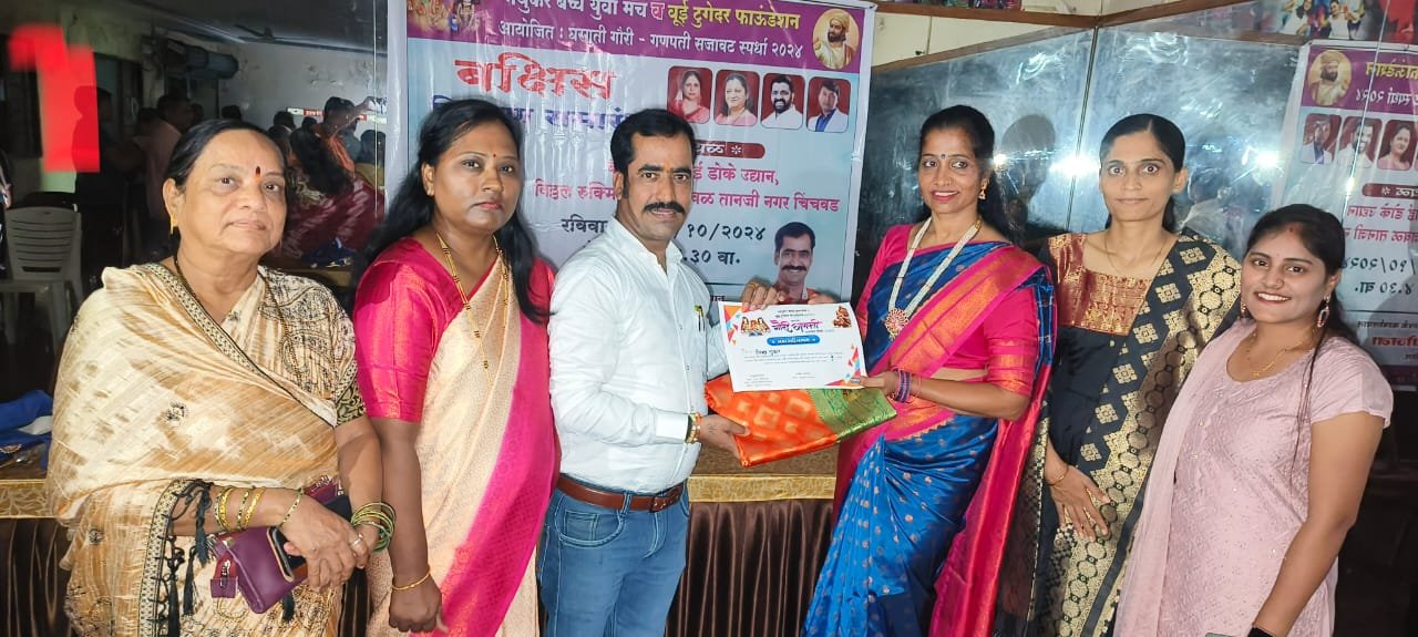 चिंचवड, (महाराष्ट्र ब्रेकिंग न्यूज ) – मधुकर बच्चे युवा मंच व वूई टुगेदर फाउंडेशन वतीने आयोजित घरगुती गौरी -गणपती सजावट स्पर्धेचा बक्षीस वितरण समारंभ रविवार चिंचवड येथे पार पडला.