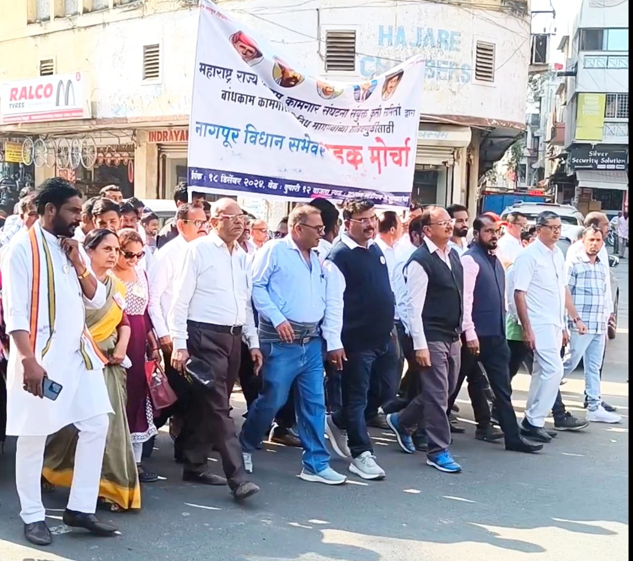 पिंपरी, (महाराष्ट्र ब्रेकिंग न्यूज ) – महाराष्ट्र राज्यातील बांधकाम कामगारांचे सुमारे दोन महिन्यापासून ऑनलाइन पद्धतीने कामकाज पूर्ण ठप्प झालेले असून लाखो बांधकाम कामगारांचे विविध योजना रखडल्या आहेत. विविध मागण्या घेऊन विधिमंडळ हिवाळी अधिवेशनामध्ये नागपुर येथे महाराष्ट्र राज्यातील विविध जिल्ह्यातील कामगारांनी हजारोच्या संख्येने मोर्चाद्वारे धडक देत आपल्या मागण्यांचा आवाज बुलंद केला. यात पिंपरी चिंचवड सह पुणे जिल्ह्यातील कामगारांचा मोठा सहभाग होता.