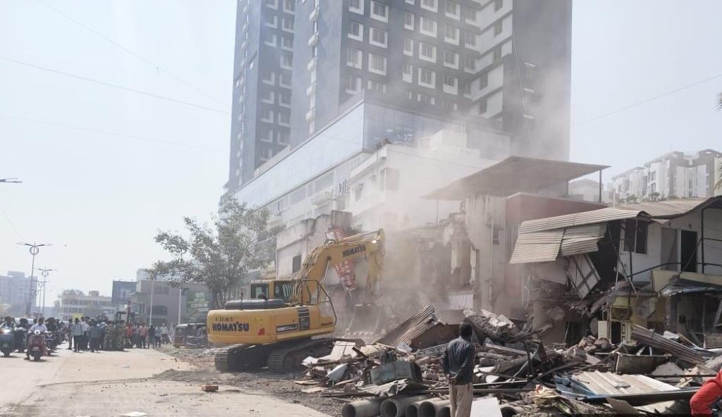 पिंपरी, (महाराष्ट्र ब्रेकिंग न्यूज ) – पिंपरी चिंचवड महानगरपालिकेचे ‘ड’ क्षेत्रीय कार्यालयअंतर्गत अनधिकृत बांधकाम नियंत्रण विभागामार्फत मौजे वाकड दत्त मंदिर रोड येथील परिसरात असलेल्या ४५ मी. रस्ता रुंदीकरण प्रक्रियेमध्ये येणाऱ्या अनधिकृत पत्र्याच्या शेड व आर.सी.सी. बांधकाम असे एकुण ७९ व्यावसायिकांना दि. १४/०८/२०२४ पासुन नोटिसा बजविण्यात आल्या होत्या. ज्या जागामालकांनी नोटिस स्विकारल्या नाहित त्या नोटीसा रितसर डकविणेत आल्या. दि.०३/०१/२०२५ पासुन अतिक्रमण वाहनामधुन अनधिकृत बांधकाम व पत्राशेड काढून घेणेबाबत जाहीर आवाहन करण्यात आले, यामध्ये दि.०६/०१/२०२५ पासुन रस्ता रुंदिकरणाचे कारवाई करण्यात येणार असल्याचे प्रत्येक दिवशी सुचीत करण्यात आले.