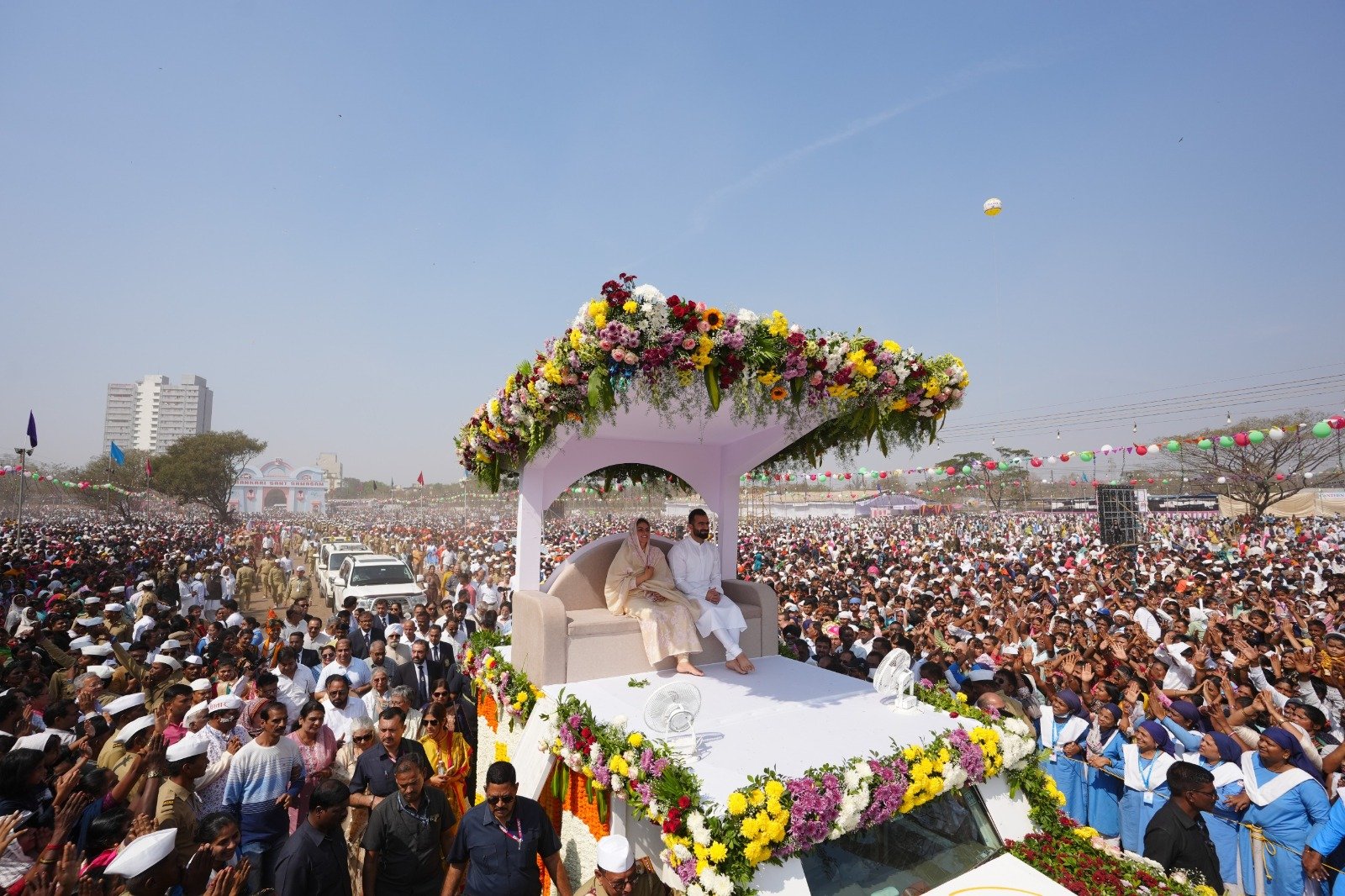 तत्पूर्वी आज सकाळी मिलिटरी डेअरी फार्मच्या विशाल मैदानांवर सतगुरु माता सुदीक्षाजी महाराज आणि आदरणीय निरंकारी राजपिता रमितजी यांच्या दिव्य आगमनाचे औचित्य साधुन श्रद्धालु भक्तांनी एका भव्य शोभायात्रेचे आयोजन केले ज्यामध्ये एका बाजुला भक्तांनी आपल्या हृदयसम्राट सद्गुरुंचे भावपूर्ण स्वागत केले तर दुसऱ्या बाजुला मिशनच्या शिकवणूकीवर आधारित महाराष्ट्र तसेच भारताच्या वेगवेगळ्या संस्कृतींचे अद्भूत मिलन दर्शविणान्या चित्ररथ स्वरूप कार्यक्रमांची सुंदर दृश्ये प्रस्तुत केली जी प्रेक्षकांच्या आकर्षणाचे कारण ठरली.