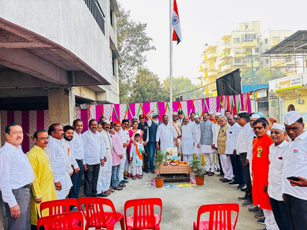 रहाटणी, (महाराष्ट्र ब्रेकिंग न्यूज ) – शिवसेना चिंचवड विधानसभा प्रमुख हरेश आबा नखाते मित्र परिवाराच्या वतीने स्वतंत्र भारताच्या ७६ व्या प्रजासत्ताक दिनानिमित् ध्वजारोहण कार्यक्रम पार पडला. त्यानिमित्ताने रहाटणी गाव ते प्रभू श्रीराम जन्मभूमी अयोध्या सायकल वारी करणाऱ्या अयोध्या वीर रहाटणी गावचे सुपुत्र ज्ञानेश्वर तांबे, संतोष नखाते,श्रीकांत काटे, अमित नखाते, वैभव तांबे व संदीप गायकवाड यांचा शाल श्रीफळ सन्मानचिन्ह देऊन त्यांचा यथोचित सन्मान करण्यात आला.तसेच प्रजासत्ताक दिना निमित्त योग गुरु श्री सुरेश जी विटकर व शिवसेना विभाग संघटिका सौ सुजाता ताई हरेश आबा नखाते यांनी आपले मनोगत व्यक्त केले कार्यक्रमाचे सूत्रसंचालन विभाग प्रमुख गोरख पाटील यांनी केले. तसेच आभार एकनाथ मंजाळ यांनी मानले.