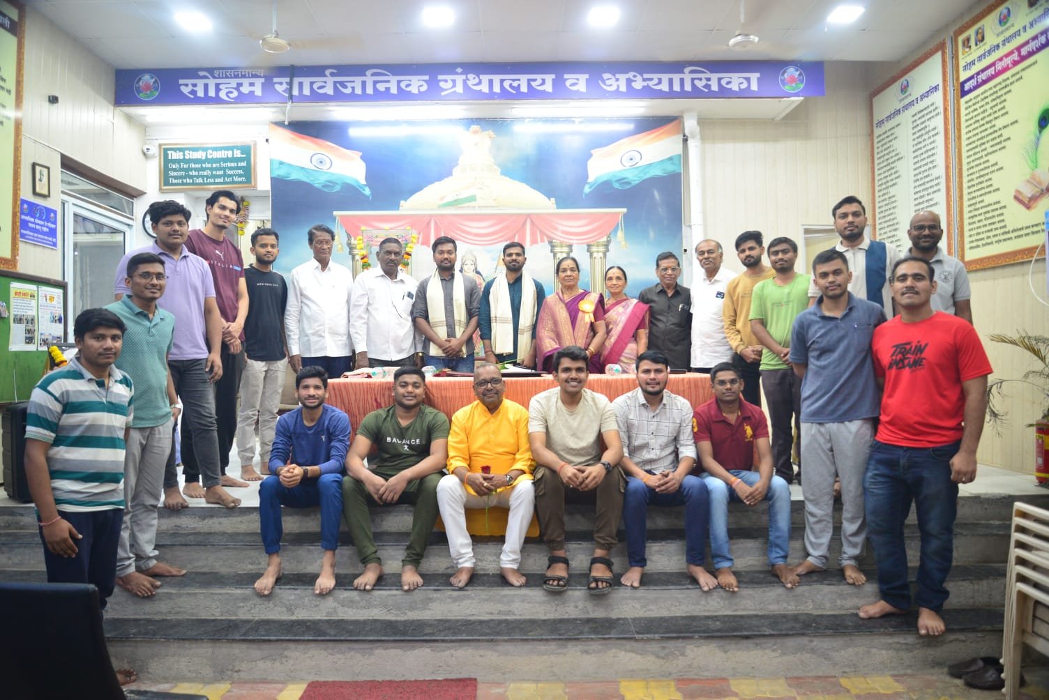 दीपप्रज्वलन, कविश्रेष्ठ कुसुमाग्रज यांच्या प्रतिमेचे पूजन आणि महाराष्ट्रगीताने कार्यक्रमाचा प्रारंभ करण्यात आला. जगन्नाथ नेरकर यांनी प्रास्ताविकातून सोहम् सार्वजनिक ग्रंथालयातील अभ्यासिकेतून आजतागायत पाचशेहून अधिक अधिकारी घडले आहेत. विद्यार्थ्यांमधील भावी अधिकाऱ्यांनी ओस पडून बंद होण्याच्या मार्गावरील मराठी शाळांना पुनरुज्जीवित करावे, असे आवाहन केले. विद्यार्थ्यांनी संयोजनात सहकार्य केले. प्रदीप गांधलीकर यांनी सूत्रसंचालन केले. नंदू कदम यांनी आभार मानले. पसायदानाने कार्यक्रमाची सांगता करण्यात आली.
