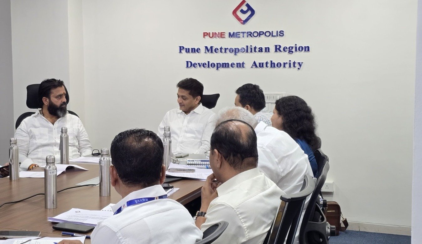 पुण्यातील ‘पीएमआरडीए’ प्रशासकीय इमारतीत गुरुवारी (दि 24) बैठक पार पडली. पिंपरी-चिंचवड शहराच्या अनुषंगाने राबवण्यात येणाऱ्या ‘पीएमआरडीए’च्या प्रस्तावित योजना व विविध विकास प्रकल्पांबाबत यावेळी चर्चा करण्यात आली. यावेळी पुणे प्रदेश महानगर विकास प्राधिकरणाचे महानगर आयुक्त योगेश म्हसे, अतिरिक्त आयुक्त दीपक सिंगला, मुख्य अभियंता रीनाज पठाण, उपजिल्हाधिकारी तथा मुख्य कार्यकारी अधिकारी हिम्मत खराडे, सह महनगर नियोजनकर श्वेता पाटील, सह आयुक्त दीप्ती सूर्यवंशी, कार्यकारी अभियंता प्रभाकर वसईकर, कार्यकारी अभियंता अनिता कुलकर्णी आदी उपस्थित होते.