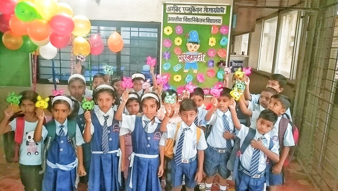 शाळेमध्ये प्रवेश करणारे बालक व त्यांना शाळेत सोडायला आलेले पालक यांचे मोठ्या उत्साहात स्वागत करण्यात आले. यावेळी अरविंद सोसायटीच्या अध्यक्षा आरती राव, प्रशालेचे सचिव प्रणव राव, भारतीय विद्यानिकेतनच्या मुख्याध्यापिका आशा घोरपडे, लिटल फ्लॉवरच्या मुख्याध्यापिका नीलम पवार, लिटल फ्लॉवर प्री प्रायमरी स्कुलच्या मुख्याध्यापिका इशिता परमार, पर्यवेक्षिका स्मिता बर्गे, पर्यवेक्षिका प्रीती पाटील, शिक्षकवृंद, शिक्षकेतर कर्मचारी, पालक उपस्थित होते.