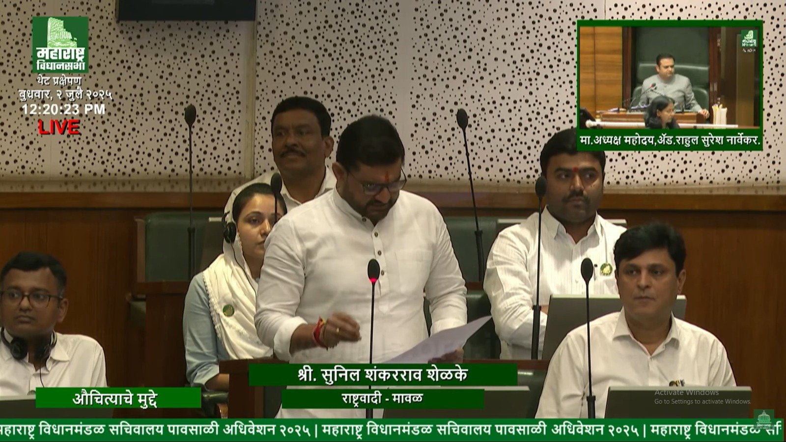 मुंबई, (महाराष्ट्र ब्रेकिंग न्यूज) – मावळचे आमदार सुनील आण्णा शेळके यांनी आज विधीमंडळाच्या पावसाळी अधिवेशनात आपल्या तालुक्यातील शेतकऱ्यांचे ज्वलंत प्रश्न ठामपणे मांडत सरकारला जाब विचारला. मावळ तालुक्यात मोठ्या प्रमाणात होणाऱ्या इंद्रायणी तांदळाच्या लागवडीसाठी लागणाऱ्या बियाण्यांचा तुटवडा गंभीर होत चालल्याने त्यांनी तातडीच्या उपाययोजनांची मागणी केली.