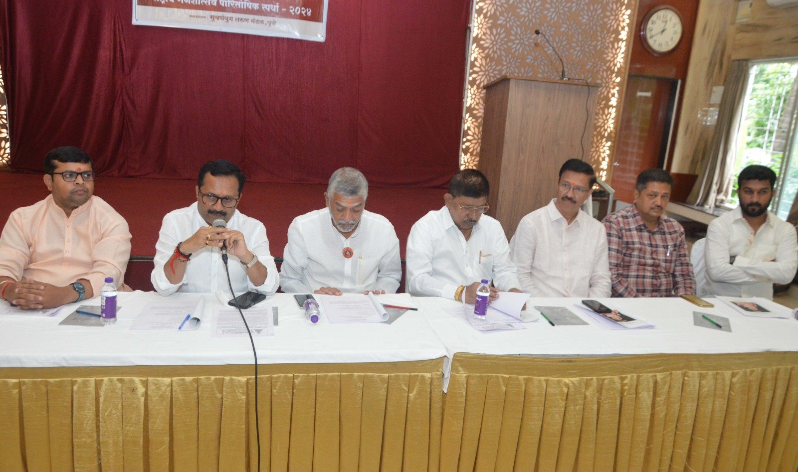 पुणे, (महाराष्ट्र ब्रेकिंग न्यूज) – श्रीमंत दगडूशेठ हलवाई सार्वजनिक गणपती ट्रस्ट, सुवर्णयुग तरुण मंडळातर्फे आयोजित राष्ट्रीय गणेशोत्सव स्पर्धा २०२४ मध्ये पुणे शहर महापालिका क्षेत्र विभागात भोसले मार्ग भवानी पेठेतील शिवाजी मित्र मंडळाने प्रथम क्रमांक पटकाविला आहे. तर, एरंडवण्यातील श्री शनि मारुती बाल गणेश मंडळाने द्वितीय, नाना पेठेतील पोटसुळ्या मारुती मंडळाने तृतीय, नवी खडकी येरवडा येथील नवज्योत मित्र मंडळ ट्रस्टने चौथे तर भांडारकर रस्त्यावरील विनायक नवयुग मित्र मंडळाने पाचव्या क्रमांकाचे पारितोषिक पटकाविले आहे. स्पर्धेत सहभागी झालेल्या १९४ मंडळे व शाळांपैकी १०६ मंडळे व शाळांनी पारितोषिके मिळविली असून एकूण १४ लाख ९५ हजार रुपयांची बक्षिसे देण्यात येणार असल्याची घोषणा ट्रस्टचे कोषाध्यक्ष महेश सूर्यवंशी आणि सरचिटणीस व आमदार हेमंत रासने यांनी पत्रकार परिषदेत केली.