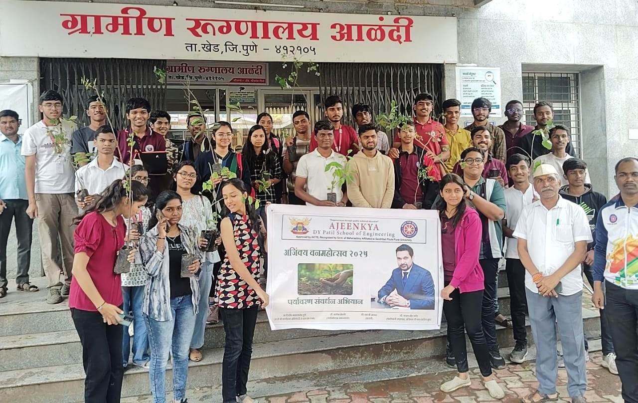 या उपक्रमांचे आयोजन अजिंक्य डी वाय पाटील समूह लोहगाव संचलित अजिंक्य डी वाय पाटील स्कूल ऑफ इंजीनियरिंग राष्ट्रीय सेवा योजना, आर्टिफिशियल इंटेलिजन्स व डाटा सायन्स विभाग, आळंदी जनहित फाउंडेशन, नमामि इंद्रायणी प्रतिष्ठान, आळंदी नगरपरिषद, आळंदी ग्रामीण रुग्णालय यांच्या संयुक्त विद्यमाने कारगिल विजय दिवसाचे औचित्य साधून ग्रामीण रुग्णालय आळंदी येथे वृक्ष लागवड व प्लास्टिक मुक्त अभियान राबविण्यात आले. कारगिल युद्धात सर्वोच्च बलिदान देणाऱ्या शूर सैनिकांना श्रद्धांजली वाहण्यासाठी व कारगिल विजय दिनाच्या या पवित्र प्रसंगी आळंदी जनहित फाउंडेशन, राष्ट्रीय सेवा योजना विभाग व आर्टिफिशियल इंटेलिजन्स आणि डाटा सायन्स विभागातर्फे कारगिल विजय दिनाची औचित्य साधून “एक पेड मां के नाम” या उपक्रमांतर्गत ग्रामीण रुग्णालय आळंदी देवाची येथे वृक्षारोपण करण्यात आले. यावेळी नागरिक, पदाधिकारी, सामाजिक कार्यकर्ते, महाविद्यालयीन विद्यार्थी, विद्यार्थिनी यांनी या सामाजिक बांधिलकीच्या उपक्रमात सहभागी होऊन आळंदी केळगाव सिद्धबेट येथून वृक्ष बाईक रॅली वृक्ष हातात घेत पुढे तिरंगा ध्वज घेत काढली. वृक्ष बाईक रॅली गोपाळपूर, चाकण चौक, भैरवनाथ चौक, मरकळ रस्ता मार्गे आळंदी पोलीस स्टेशन समोरून आळंदी ग्रामीण रुग्णालय येथे देशभक्तीमय उत्साहात आली. विविध देशी फळझाडांची व नैसर्गिक पद्धतीने वाढणाऱ्या वृक्षांची लागवड करण्यात आली. वृक्ष लागवडी सोबतच स्वयंसेवक विद्यार्थ्यांनी ग्रामीण रुग्णालय परिसरात स्वच्छता करून प्लास्टिक मुक्त अभियानाचा संदेश दिला.