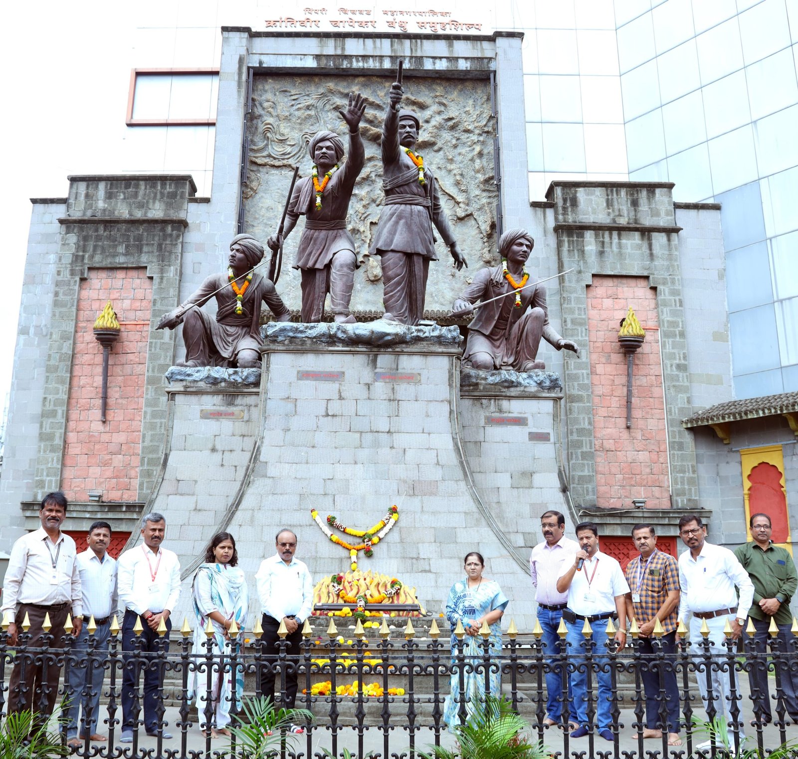 पिंपरी, (महाराष्ट्र ब्रेकिंग न्यूज) – महानगरपालिकेच्या वतीने क्रांतीदिनानिमित्त चिंचवड येथील हुतात्मा चापेकर बंधूंच्या समूह शिल्पास, चिंचवड स्टेशन येथे थोर क्रांतिगुरू लहुजी वस्ताद साळवे आणि क्रांतिकारक वासुदेव बळवंत फडके यांच्या पुतळ्यास तसेच दापोडी येथील शहीद भगतसिंग आणि शहीद नारायण दाभाडे यांच्या पुतळ्यास उप आयुक्त अण्णा बोदडे यांच्या हस्ते पुष्पहार अर्पण करून अभिवादन करण्यात आले.
