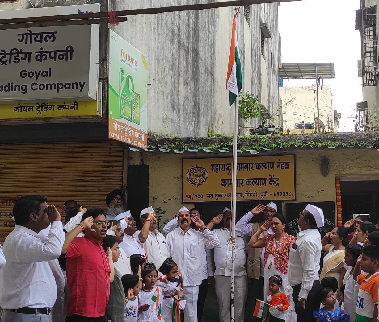 यावेळी शहरात प्रथमच महाराष्ट्र कामगार कल्याण मंडळाच्या गुणवंत कामगार पुरस्कार विजेत्या संगीता जोगदंड यांच्या हस्ते ध्वजारोहण करण्यात आले. यावेळी संगीता जोगदंड म्हणाल्या की मला ज्या मंडळाने गुणवंत कामगार पुरस्कार दिला त्याच महाराष्ट्र कामगार कल्याण मंडळाच्या संत तुकारामनगर केंद्रात मला ध्वजारोहणाचा सन्मान मिळाला हे माझे नशीबच आहे , कामगार कल्याण मंडळ जात, धर्म, पंथ असा भेदभाव न करता कामगाराच्या पाठीशी खंबीरपणे उभे राहिले आहे. आणि सर्वांनी कामगार कल्याण योजनांचा कामगारांनी त्याचा फायदा करून घेण्याचे आवाहन गुणवंत कामगार संगिता जोगदंड यांनी केले.त्याच्या हस्ते शिशुविहारातील मुलांना खाऊ वाटप केला.