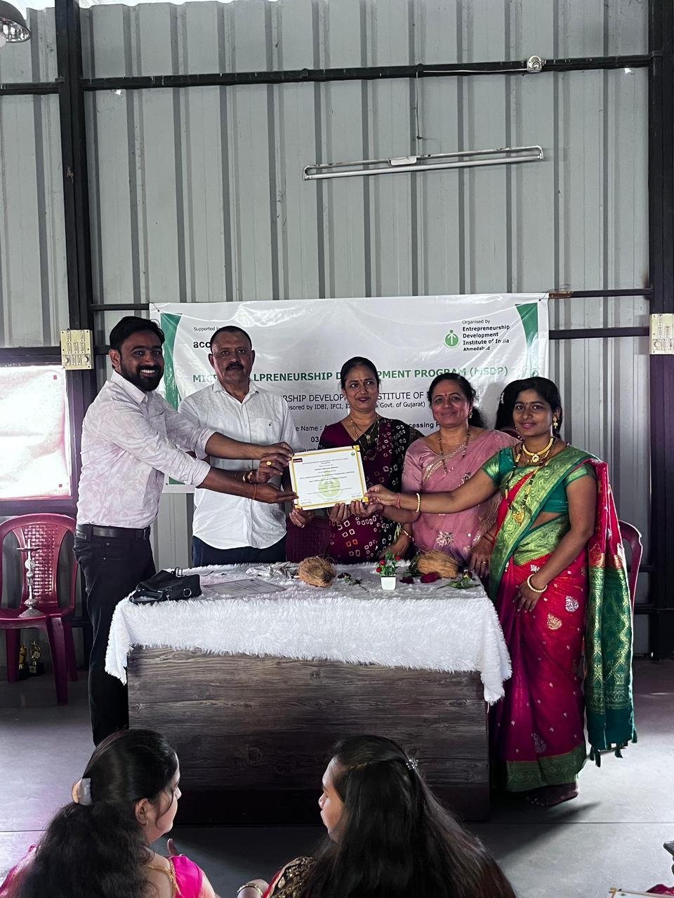 कार्यक्रमाच्या समारोप प्रसंगी मा.नगरसेवक शांताराम बापू भालेकर, भगवान हरकळ ( EDII Manager) ज्योती हेलवे,( एरिया को-ऑर्डिनेटर माविम) अमृता गोडसे ( मास्टर ट्रेनर)यांनी सहभागी महिलांना प्रमाणपत्रे प्रदान केली.