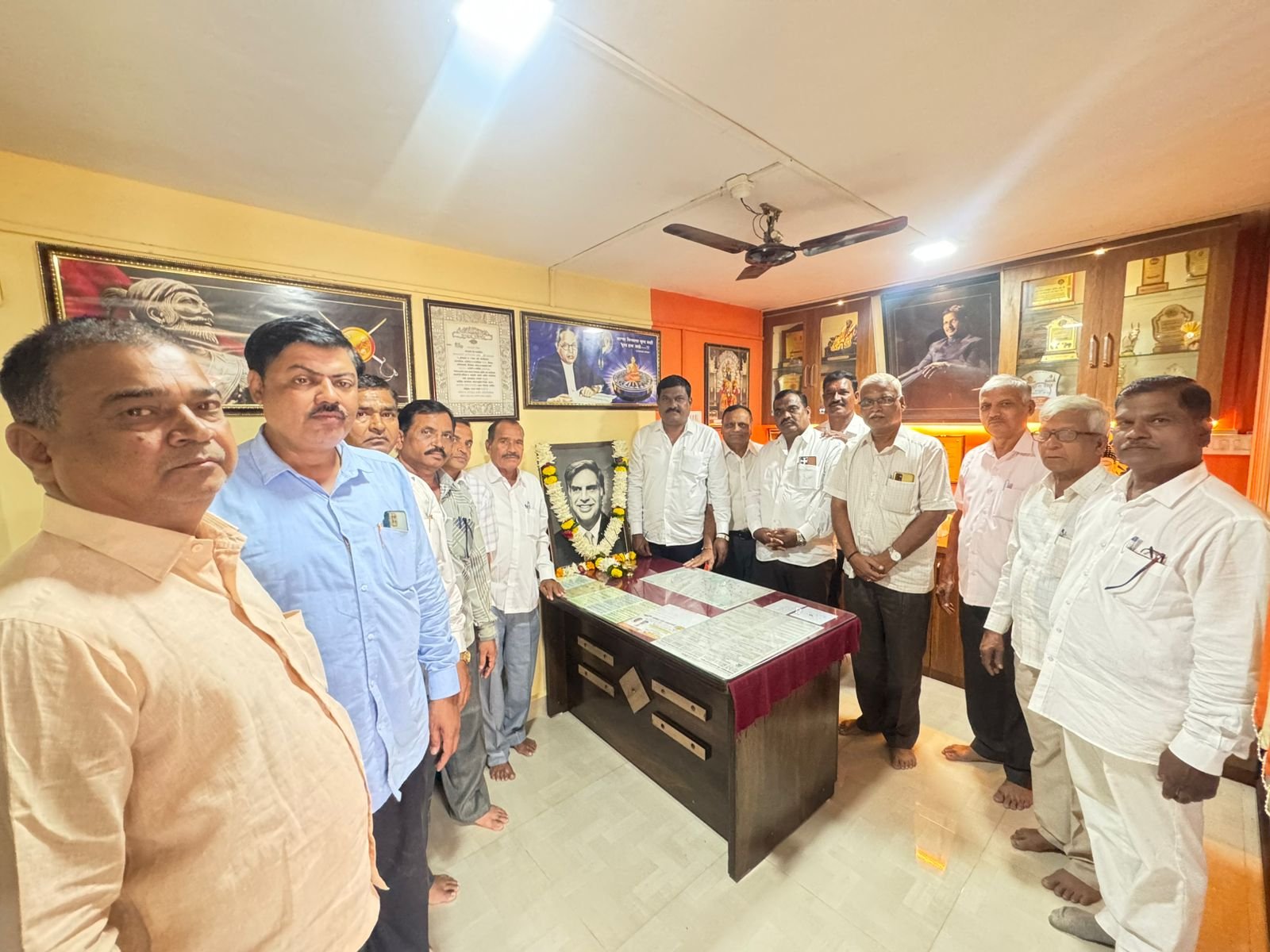 पिंपरी, (महाराष्ट्र ब्रेकिंग न्यूज) – टाटा मोटर्स उद्योग समूहातील सर्वसामान्य कामगारांचे दैवत, उद्योगमहर्षी, पद्मविभूषण रतन टाटा यांच्या प्रथम पुण्यतिथीनिमित्त टाटा मोटर्सच्या कामगारांनी मा. नगरसेवक बाबासाहेब त्रिभुवन यांच्या जनसंपर्क कार्यालयात एकत्र येत त्यांच्या प्रतिमेचे पूजन करत त्यांना भावपूर्ण आदरांजली वाहिली.