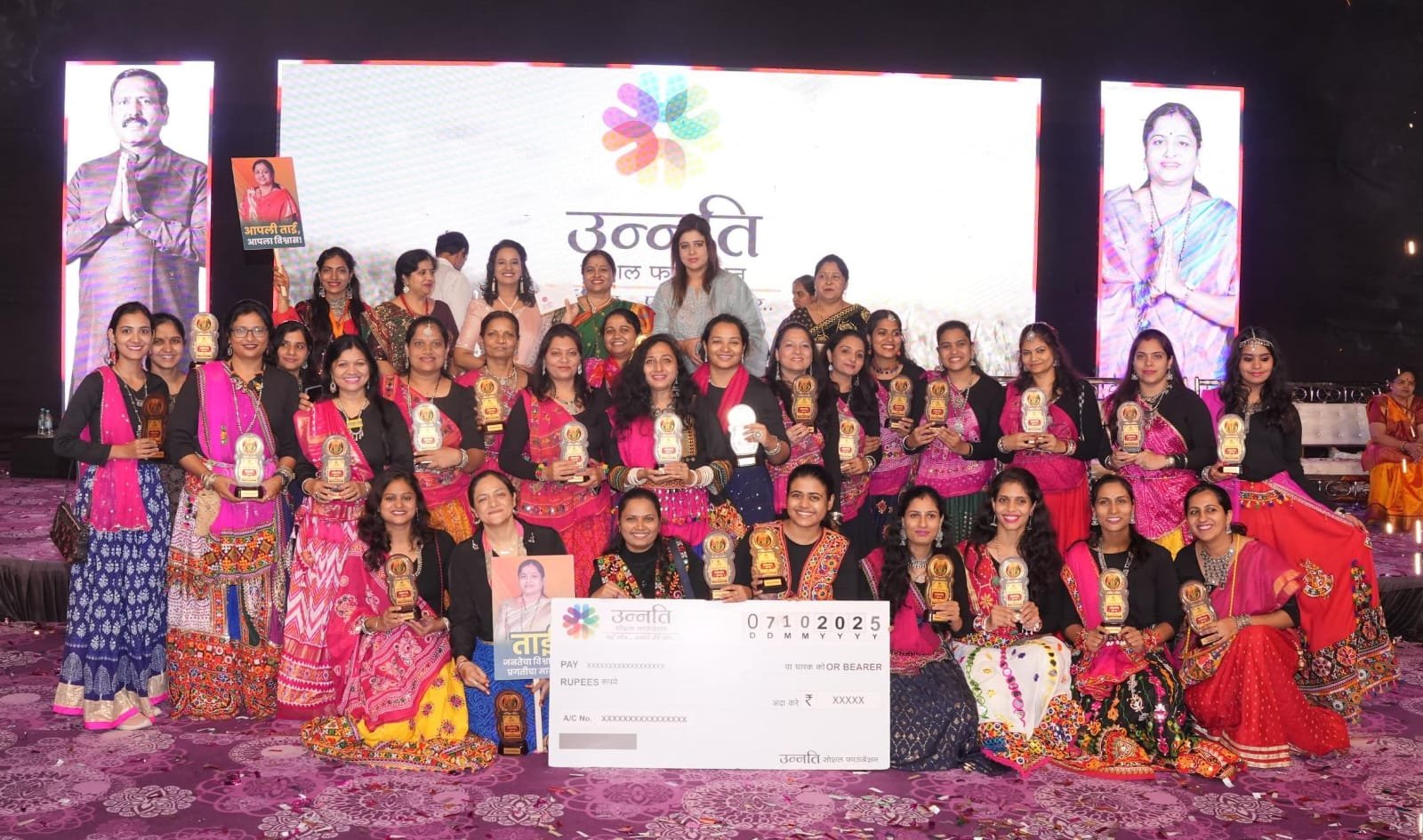 या स्पर्धेमध्ये प्रत्येक सहभागी ग्रुपला रोख रक्कम, सन्मानचिन्ह व प्रशस्तीपत्रक देऊन गौरविण्यात आले. कार्यक्रमाचे वैशिष्ट्य म्हणजे केवळ मनोरंजनापुरती दांडिया संध्याकाळ न ठेवता, त्याला स्पर्धात्मक व सांस्कृतिक अधिष्ठान देण्याचा प्रयत्न उन्नती सोशल फाउंडेशनने केला.