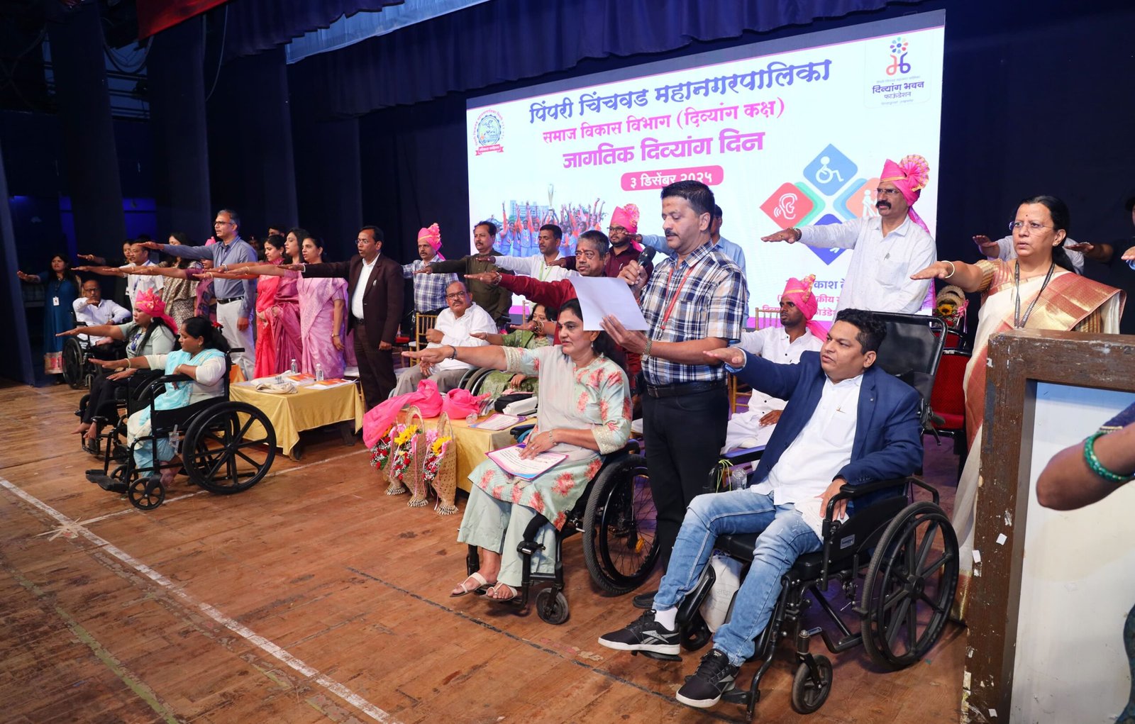 पिंपरी चिंचवड महापालिकेच्या वतीने जागतिक दिव्यांग दिनानिमित्त समाज विकास विभागाच्या दिव्यांग भवन फाऊंडेशनच्या माध्यमातून दिव्यांग बांधवांसाठी विशेष कार्यक्रमाचे आयोजन करण्यात आले होते. या कार्यक्रमात शेकडो दिव्यांग बांधवांनी उत्स्फूर्तपणे सहभाग घेत मतदानाची शपथ घेतली,शपथेचे वाचन जनता संपर्क अधिकारी प्रफुल्ल पुराणिक यांनी केले.