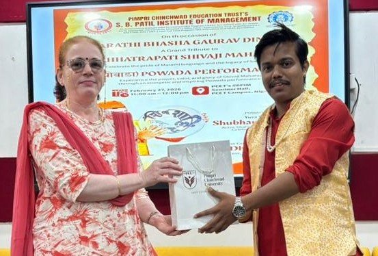 मराठी भाषा गौरवदिन आणि छत्रपती शिवाजी महाराज यांच्या जयंतीचे औचित्य साधून पिंपरी चिंचवड एज्युकेशन ट्रस्टच्या एसबीपीआयएम महाविद्यालय येथील ग्रंथालयात व्याख्यानाचे आयोजन करण्यात आले होते. यावेळी छत्रपती शिवाजी महाराज यांच्या प्रतिमेस एसबीपीआयएम संस्थेच्या संचालिका डॉ. किर्ती धारवाडकर यांच्या हस्ते पुष्पहार अर्पण करून अभिवादन करण्यात आले.