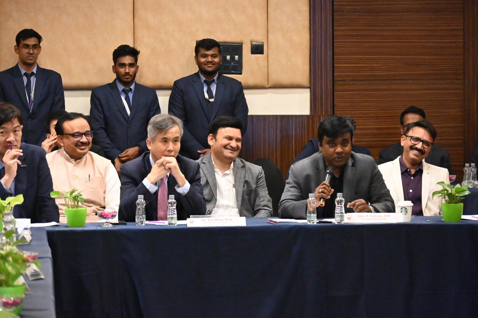 महाराष्ट्र औद्योगिक विकास महामंडळ (एमआयडीसी) आणि कोरिया एसएमइज अँड स्टार्टअप एजन्सी (कॉस्मे – KOSME) आणि पिंपरी चिंचवड विद्यापीठाचे “पीसीयू – कोरिया फॅसिलिटेशन सेंटर” यांच्या वतीने पुणे, हॉटेल ऑर्चिड येथे सोमवारी (दि.१६ मार्च) संयुक्त परिसंवादाचे आयोजन करण्यात आले होते. यावेळी पी. वेलरासु बोलत होते. यावेळी एमआयडीसीचे संयुक्त मुख्य कार्यकारी अधिकारी श्री राठोड, कोरिया प्रजासत्ताक महावाणिज्य दूत (मुंबई) यू डोंग वॉन, कॉस्मे संचालक ली जे क्युंग, पीसीइटी चे कार्यकारी संचालक डॉ. गिरीश देसाई, पीसीयू नियामक मंडळ सदस्य सचिन इटकर, पीसीयू औद्योगिक संबंध संचालक डॉ. प्रणव चरखा, ताराजीनच्या मुख्य कार्यकारी अधिकारी व पीसीयूच्या प्रा. युजिन हान, कॉस्मे उद्योजक प्रतिनिधी तसेच ह्युंदाई ग्लोविस, इलजिन ग्लोबल इंडिया, ह्योसंग ग्रुप, सेन्सरटेक इंडिया, डाँगक्वांग प्रिसिजन, टर्बोमॅक्स इंडिया, कॉमॉस इंडिया, हेउंगकूक इंडिया, साविल्स इंडिया यासह इतर अनेक कोरियन कंपन्यांचे प्रतिनिधी उपस्थित होते.