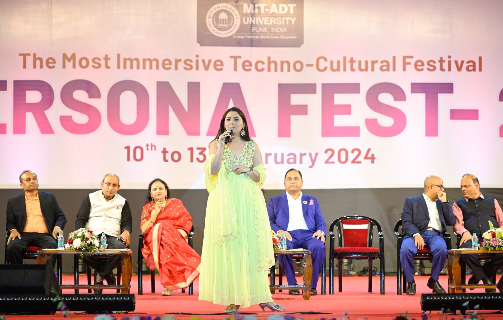 ती एमआयटी आर्ट, डिजाईन आणि टेक्नाॅलाॅजी विद्यापीठाच्या सहाव्या ‘पर्सोना फेस्ट-२४’ च्या उद्घाटनात बोलत होती. याप्रसंगी, सैराट फेम अभिनेत्री रिंकू राजगुरू, ‘एमआयटी एडीटी’ विद्यापीठाचे कार्याध्यक्ष व कुलगुरू प्रा.डाॅ.मंगेश कराड, एमआयटी ‘मिटकाॅम’च्या कार्यकारी संचालक प्रा.डाॅ.सुनिता कराड, प्र.कुलगुरू डाॅ.अनंत चक्रदेव, डाॅ.रामचंद्र पुजेरी, डाॅ.मोहित दुबे, कुलसचिव डाॅ.महेश चोपडे, डाॅ.विरेंद्र शेटे, डाॅ.रजनीशकौर सचदेव-बेदी, डाॅ.नचिकेत ठाकूर, डाॅ.मिलिंद ढोबळे आदी उपस्थित होते.