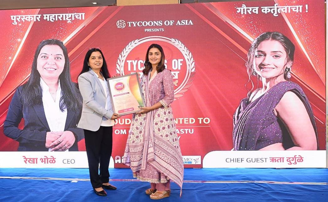 आपल्या सौदर्य मुळे आणि उत्तम अभिनय शैलीमुळे चाहत्यांच्या मनाचा ठोका चुकवणारी अभिनेत्री, ” दुर्वा ” स्टार प्रवाहावर, “फुलपाखरू” झी युवा वर , “मन उडू उडू झालं” झी मराठी वर या मालिका,मराठी चित्रपट ‘ टाईमपास-3’ आणि “अन्यन्या ” ,एका काळेचे मनी ही वेबसिरीज , महाराष्ट्र टाइम्स सन्मान अवार्ड ,झी युवा सन्मान, झी नाट्य गौरव पुरस्कार, लोकमत पुरस्कार अशी मराठी इंडस्ट्री मधील महाराष्ट्राची क्रश म्हणून ओळखल्या जाणाऱ्या युवा अभिनेत्री ऋचा दुर्गुळे यांच्या हस्ते नुकताच नाशिक येथे वास्तू एक्सपर्ट तसेच ओम गगनगिरी वर्ड फाउंडेशन च्या CEO फाउंडर डॉ. रेखा मोहन भोळे यांना Tycoons of महाराष्ट्र हा पुरस्कार देऊन गौरविण्यात आले.
