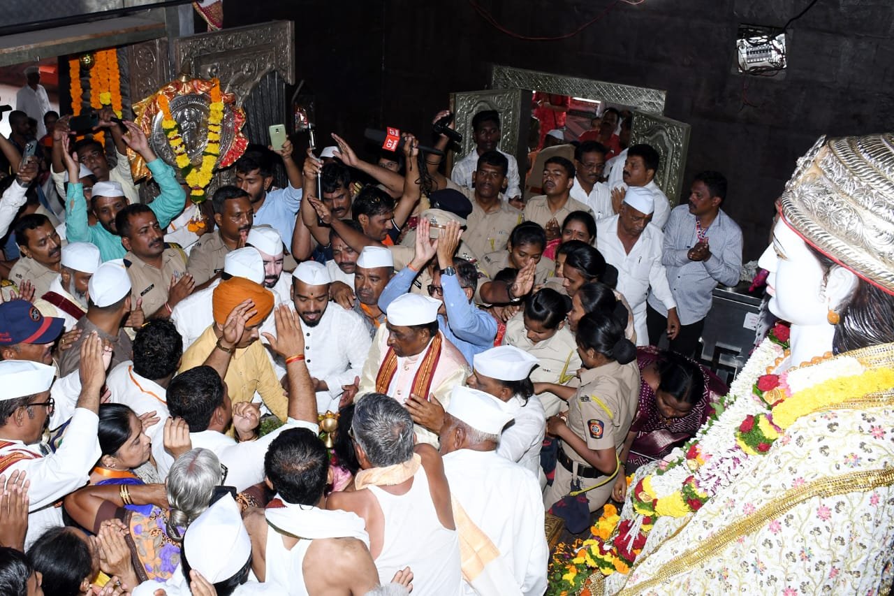 आळंदी ( महाराष्ट्र ब्रेकिंग न्यूज) – आळंदी – पुणे रस्त्यावरील वडमुखवाडी येथील श्री संत ज्ञानेश्वर महाराज थोरल्या पादुका मंदिरात माऊलींच्या पादुका पालखी सोहळा मालक राजेंद्र आरफळकर यांनी मंदिरात प्रथा परंपरांचे पालन करीत आणल्या. यावेळी माऊलींचे पादुकांची महापुजा दही, दूधाचा व मधाचा अभिषेक,आरती, पुरणपोळीचा महानैवेद्य व पेढे प्रसाद वाढविण्यात आला. श्री संत ज्ञानेश्वर महाराज थोरल्या पादुका मंदिर ट्रस्ट चे संस्थापक अध्यक्ष अँड. विष्णू तापकीर, सुनीता तापकीर यांच्या हस्ते श्रींची पूजा करण्यात आली. यावेळी भाविकांची दर्शनास मोठी गर्दी झाली होती.