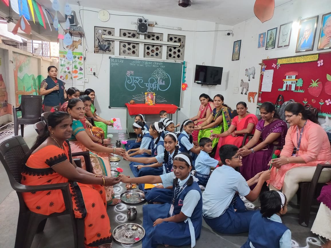 पिंपरी, (महाराष्ट्र ब्रेकींग न्यूज) – सांगवीतील अरविंद एज्युकेशन सोसायटीच्या लिटल फ्लॉवर इंग्लिश मीडियम प्राथमिक व माध्यमिक स्कुल, भारतीय विद्यानिकेतन प्रशाला आणि ज्युनिअर कॉलेजमध्ये गुरुपूजन आणि पालकांचे गुरुमंत्राच्या संगीतमय वातावरणात पाद्यपूजन करून गुरुपौर्णिमा साजरी करण्यात आली. दरम्यान, विद्यार्थ्यांसाठी मराठी, हिंदी हस्ताक्षर स्पर्धेचे आयोजन करण्यात आले होते.