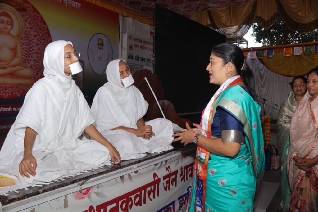 पिंपरी विधानसभा मतदार संघातील महाविकास आघाडीतील राष्ट्रवादी शरद पवार पक्षाच्या अधिकृत उमेदवार डॉ. सुलक्षणा शिलवंत यांनी आज त्यांच्या मतदारसंघात येणाऱ्या चिंचवड परिसरात प्रचार फेरी काढली होती त्यावेळी श्री वर्धमान स्थानकवासी जैन श्रावक संघ व कल्याण प्रतिष्ठान यांच्यावतीने आयोजित करण्यात आलेल्या चातुर्मास उपक्रमात सहभागी झालेल्या जैन साध्वींचे दर्शन घेतले.