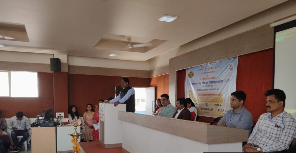आकुर्डी, (महाराष्ट्र ब्रेकिंग न्यूज ) – पुणे जिल्हा शिक्षण मंडळाच्या प्रा. रामकृष्ण मोरे कला , वाणिज्य व विज्ञान महाविद्यालय ( स्वायत्त) आकुर्डी येथे समर्थ भारत अभियान योगदान कार्यशाळा विद्यार्थी कल्याण मंडळाच्या अंतर्गत पार पडली. तीन सत्रात वेगवेगळ्या तज्ञ मार्गदर्शकांनी विद्यार्थ्यांना मार्गदर्शन केले. व्याख्याते. प्रा. प्रदीप कदम यांनी प्रथम सत्रात युवक आणि कौशल्य विकास यावर मार्गदर्शन केले. ते म्हणाले, “कौशल्यातून सक्षम तरुण निर्माण होऊ शकतो.” दुसऱ्या सत्रात डॉ. गणेश ढवळे यांनी आत्मनिर्भर युवक या विषयावर “विद्यार्थी व तरुणांच्या आत्मनिर्भरतेत राष्ट्राचे हित आहे” असे सांगून विद्यार्थ्यांशी संवाद साधला. तर तृतीय सत्रात मा. विजय गोरडे यांनी आधुनिक युवक व तांत्रिक कौशल्य यावर विद्यार्थ्यांना मार्गदर्शन केले. त्यांनी विद्यार्थ्यांना २१ व्या शतकात तांत्रिक कौशल्याचे महत्व पटवून दिले.