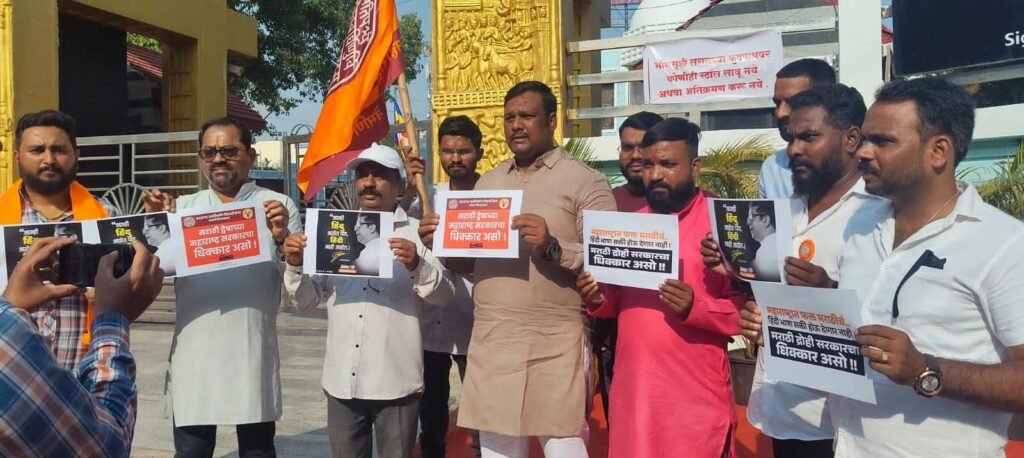 पिंपरी, (महाराष्ट्र ब्रेकिंग न्यूज) – राज्य सरकारने शालेय अभ्यासक्रमात तिसरी म्हणून हिंदी भाषा अनिवार्य करण्याचा निर्णय मागे घेण्यात यावा. तसेच या निर्णयाचा निषेध सदर हिंदी भाषा सक्तीचा जिआर फाडून डॉ. बाबासाहेब आंबेडकर चौक, पिंपरी येथे घोषणा देऊन निषेध व्यक्त करण्यात आला.