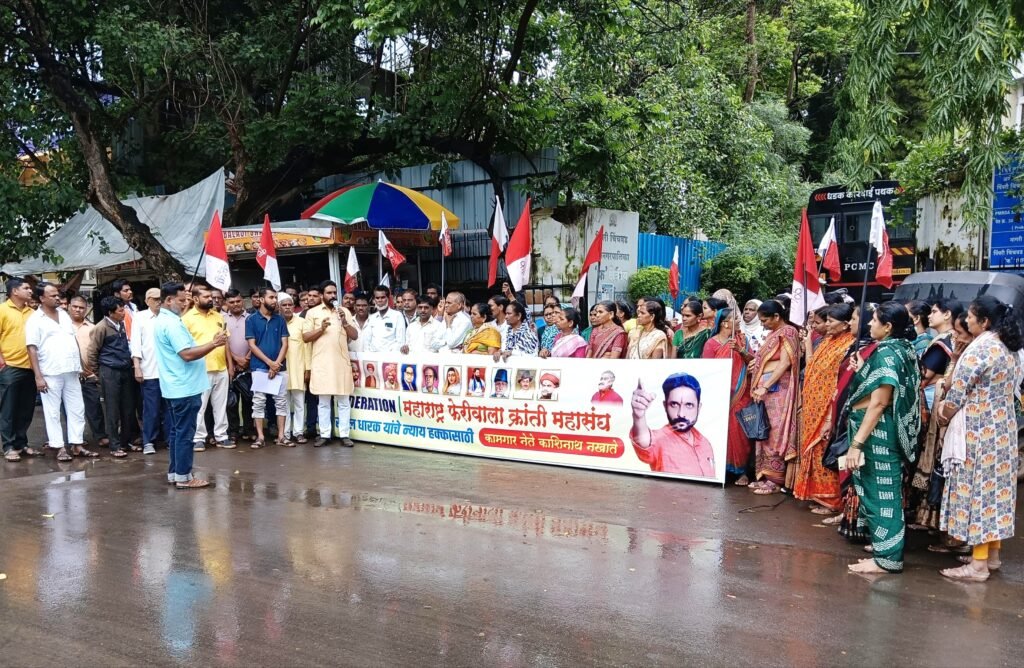 पिंपरी, (महाराष्ट्र ब्रेकिंग न्यूज) – पिंपरी चिंचवड महानगरपालिकेच्या फ क्षेत्रीय कार्यक्षेत्रामध्ये असणाऱ्या सेक्टर नं१७ व १९ घरकुल येथे भाजी मंडई हॉकर झोन निर्माण करण्यात आले. येथे कोबा करण्यात आला मात्र सदरच्या ठिकाणी पत्र्याची शेड करावे,ओटे निर्माण करून द्यावेत ,लाईट ,पाणी द्यावे या मागण्यासाठी फ क्षेत्रीय कार्यालयावर नॅशनल हॉकर फेडरेशन,महाराष्ट्र फेरीवाला क्रांती महासंघाच्या वतीने मोठ्या घोषणा देत आंदोलन करण्यात आले.